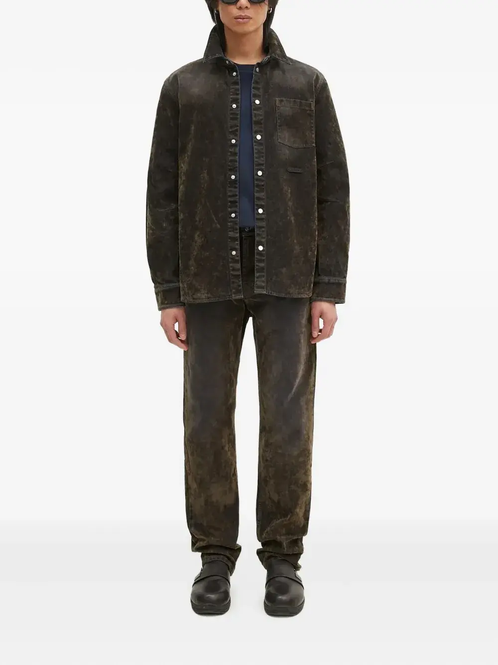 Темно-коричневая хлопковая модель с пятикарманным принтом и застежкой на пуговицы