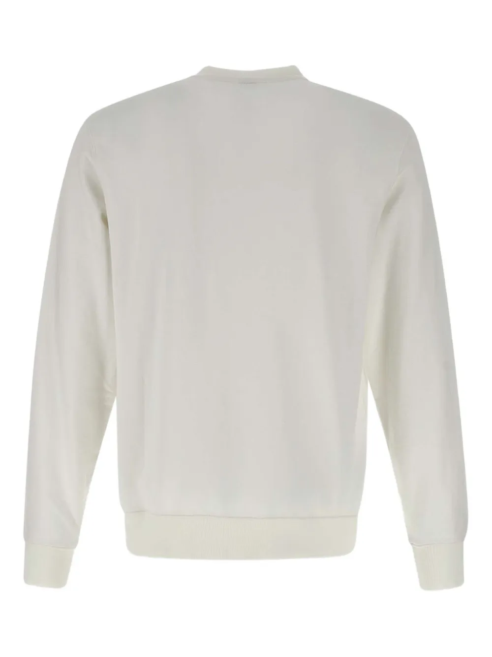 Кремовый вышитый логотип, ребристые манжеты, ребристый подол, круглый вырез горловины.