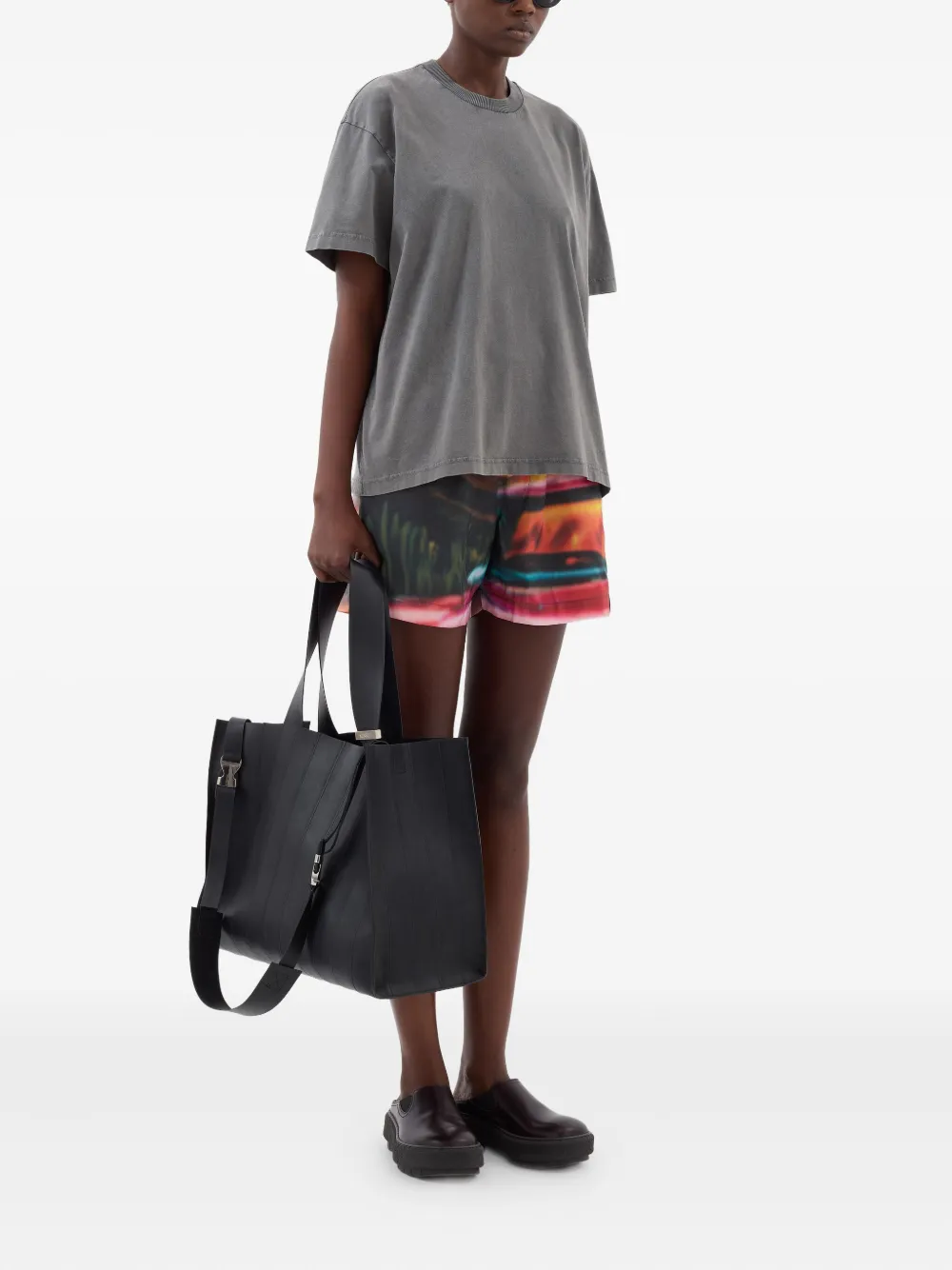 Круглый вырез горловины, короткие рукава, прямой подол, антрацитово-серый