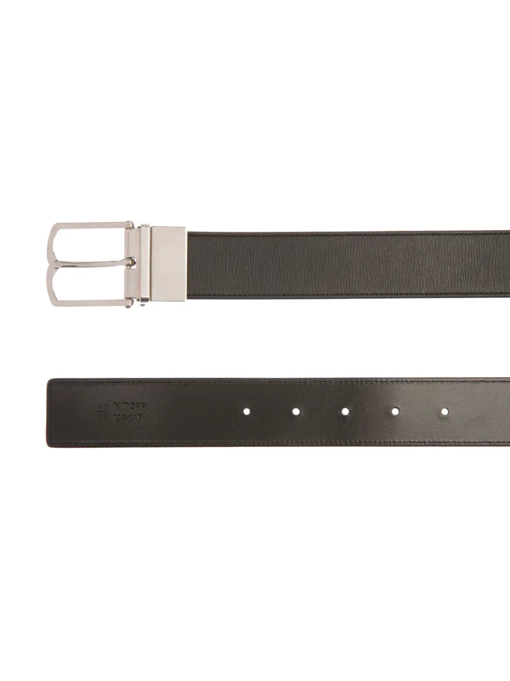 Тисненый логотип внутри, застежка на серебристой пряжке и прорезанные отверстия.