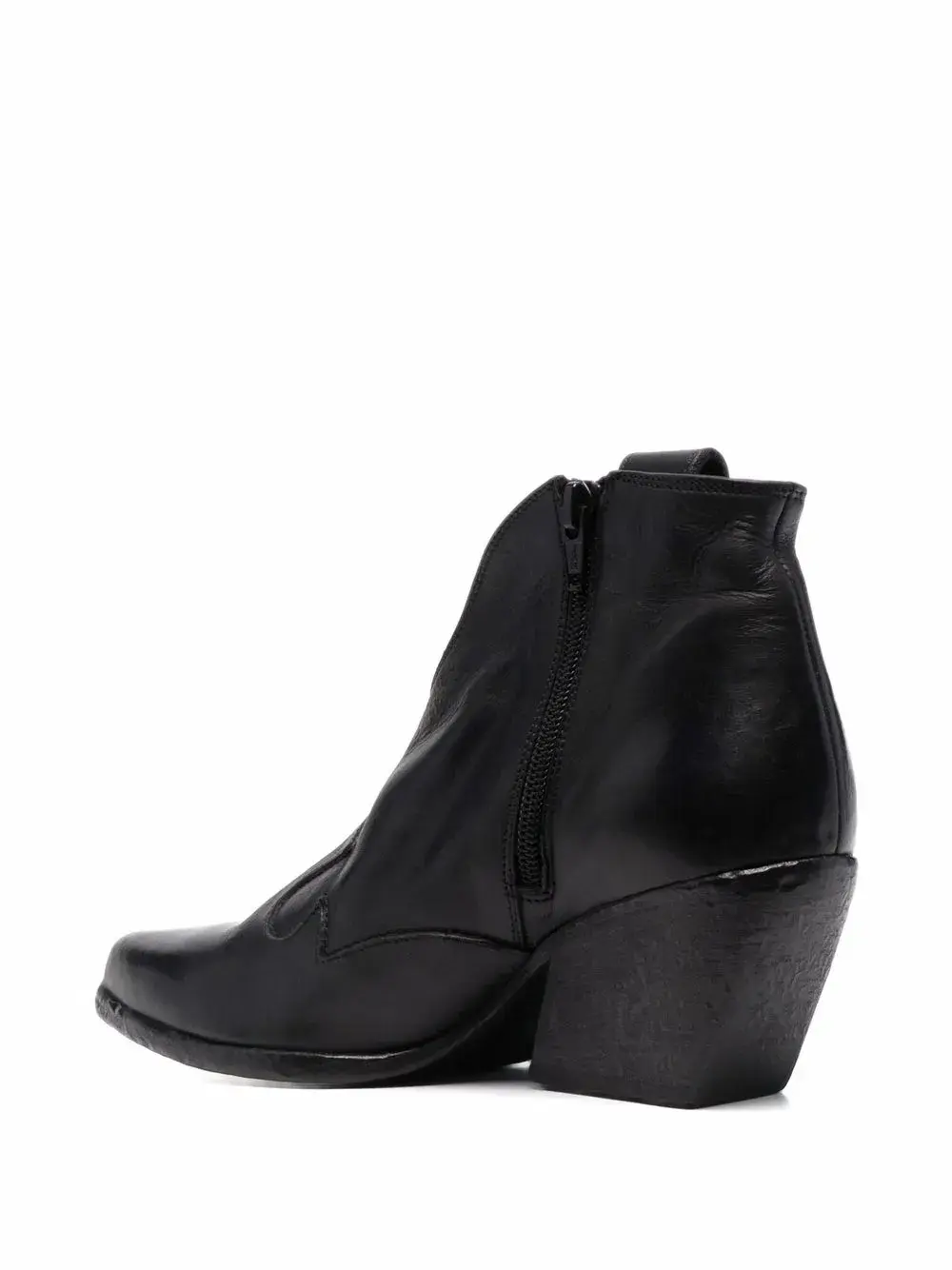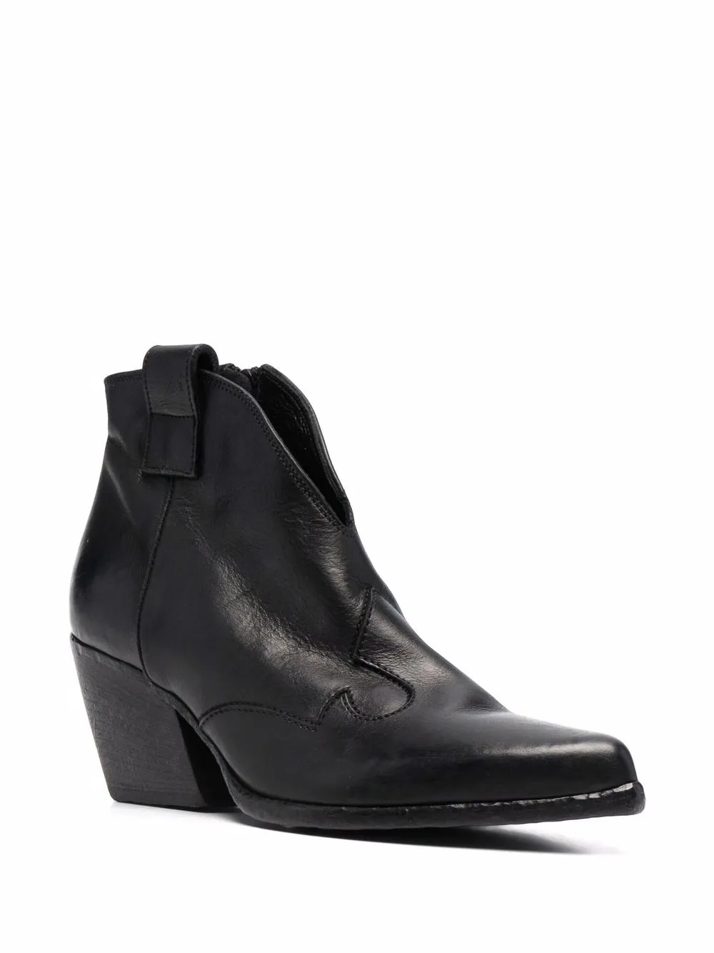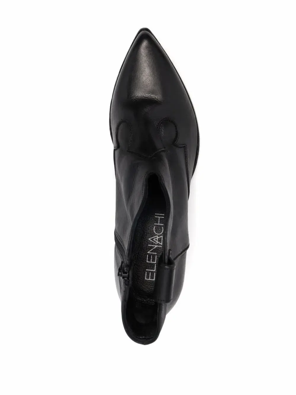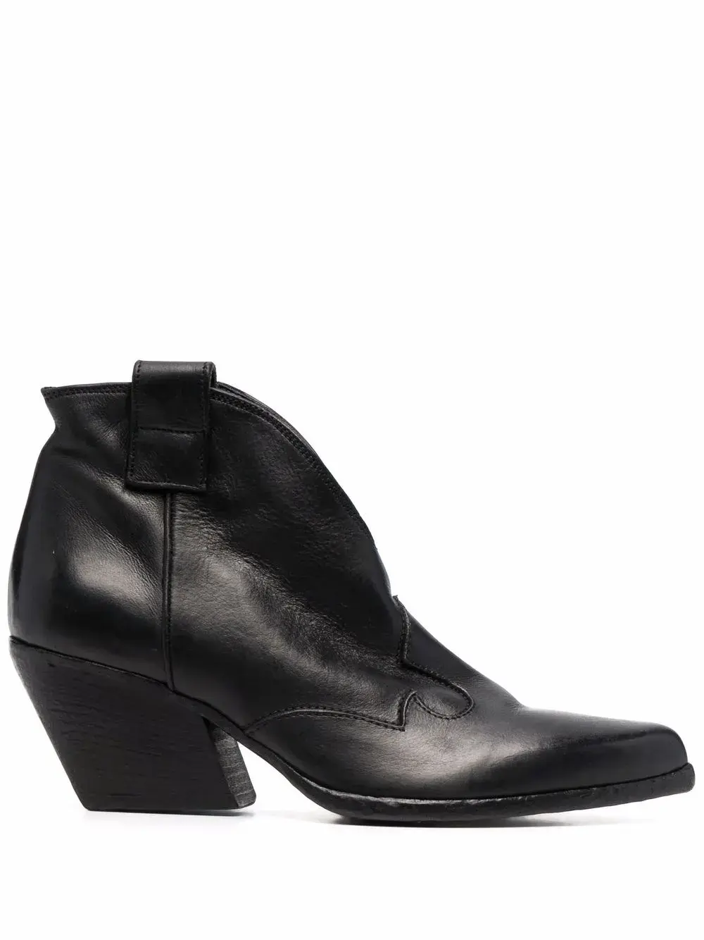 Модель в стиле вестерн, заостренный носок, низкий каблук и модель без застежки.
