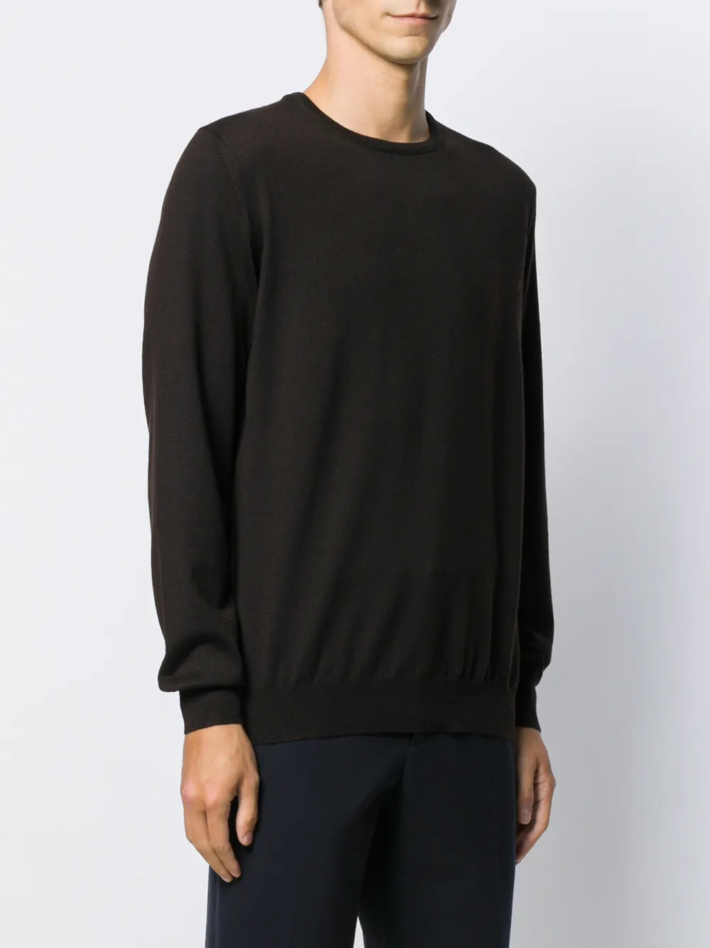 Толстовка с круглым вырезом от La Fileria for D'aniello. Круглый вырез под горло в рубчик, без логотипа, длинные рукава и подол и манжеты в рубчик. Цвет: коричневый.