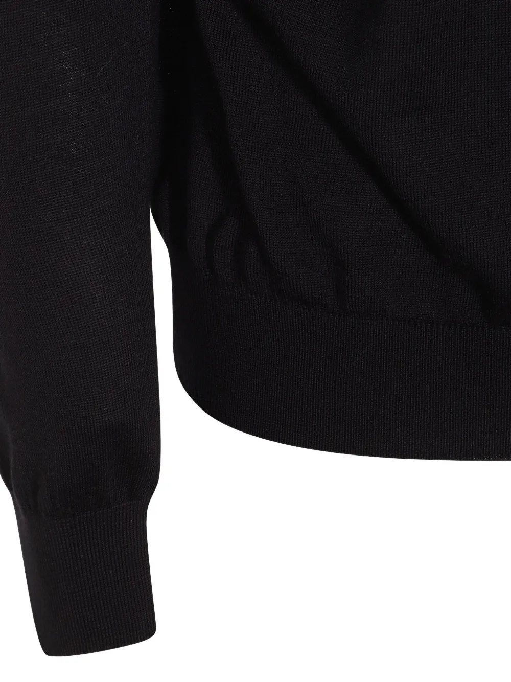 Темно-синий кашемировый свитер с круглым вырезом, длинными рукавами, ребристыми манжетами и подолом.