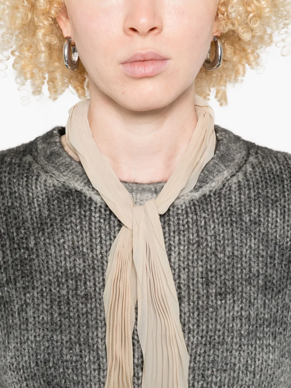 Черно-серый омбре-эффект, ребристые манжеты и подол, круглый вырез, длинные рукава, смесь мериноса и кашемира