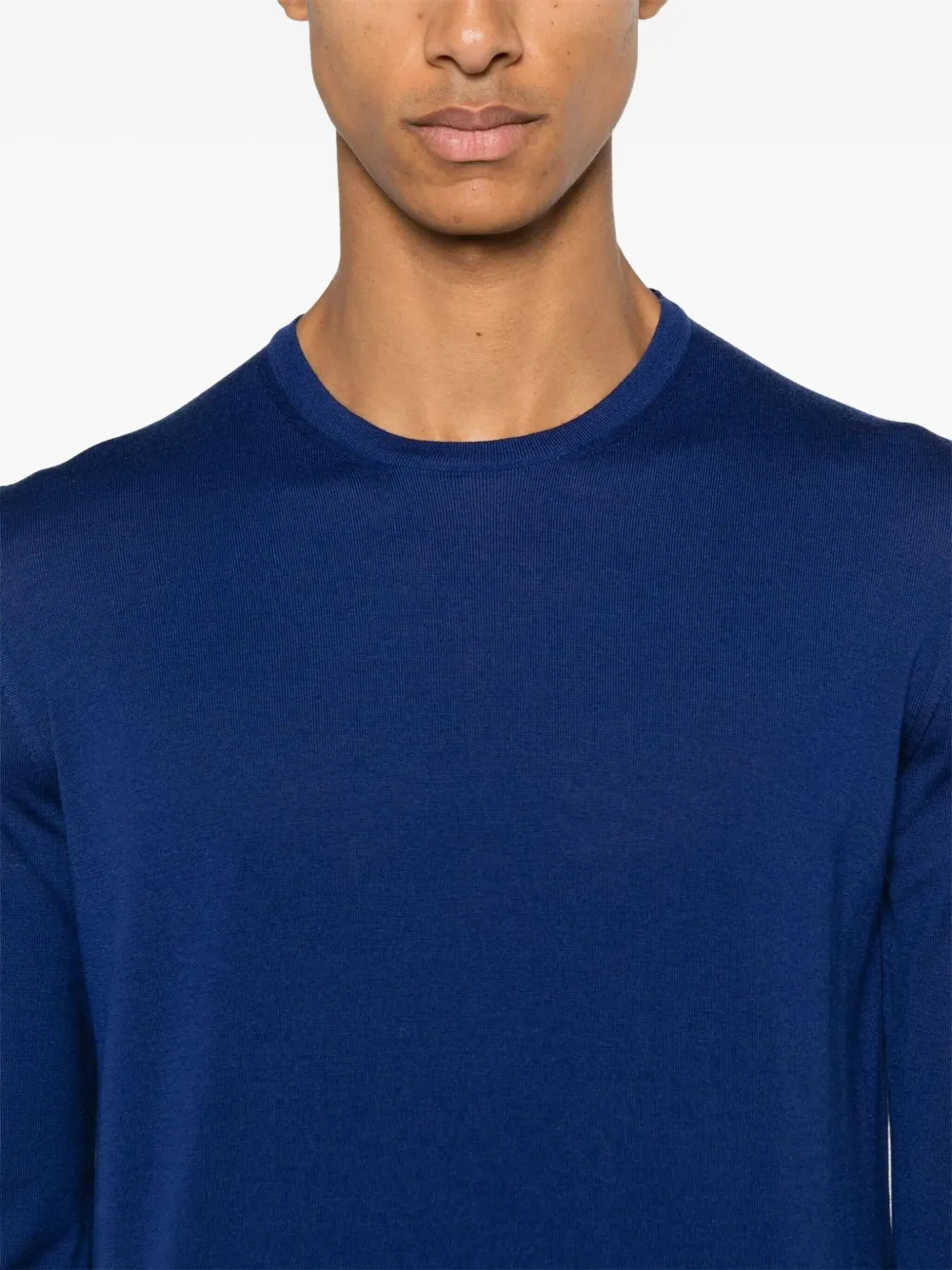 Синяя кофточка с круглым вырезом и длинными рукавами