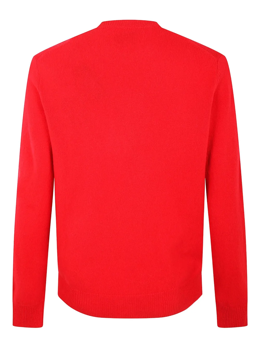 Красный круглый вырез горловины, длинные рукава, ребристый подол, ребристые манжеты.