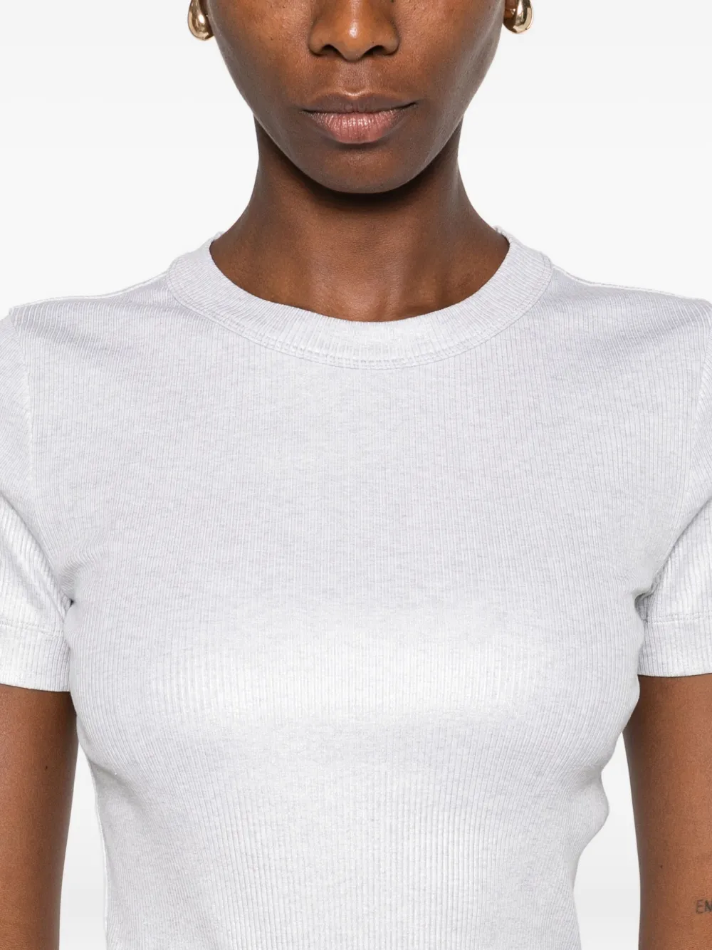 Серая хлопковая смесь, ребристая фактура, круглый вырез, короткие рукава