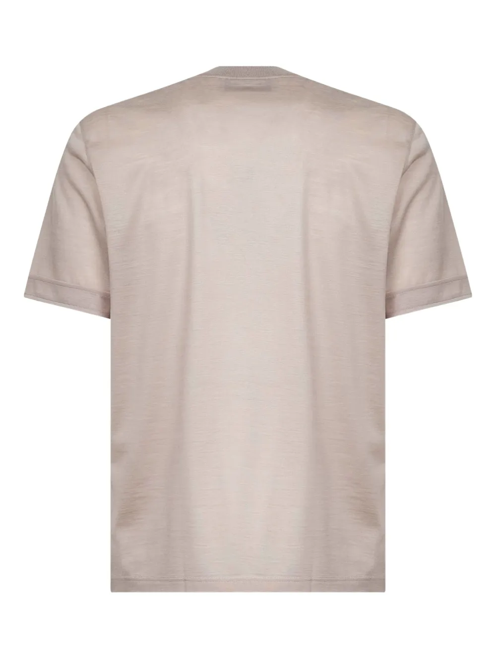 Бежевый ребристая модель с круглым вырезом, короткими рукавами, прямым подолом, из натуральной шерсти, однотонный.