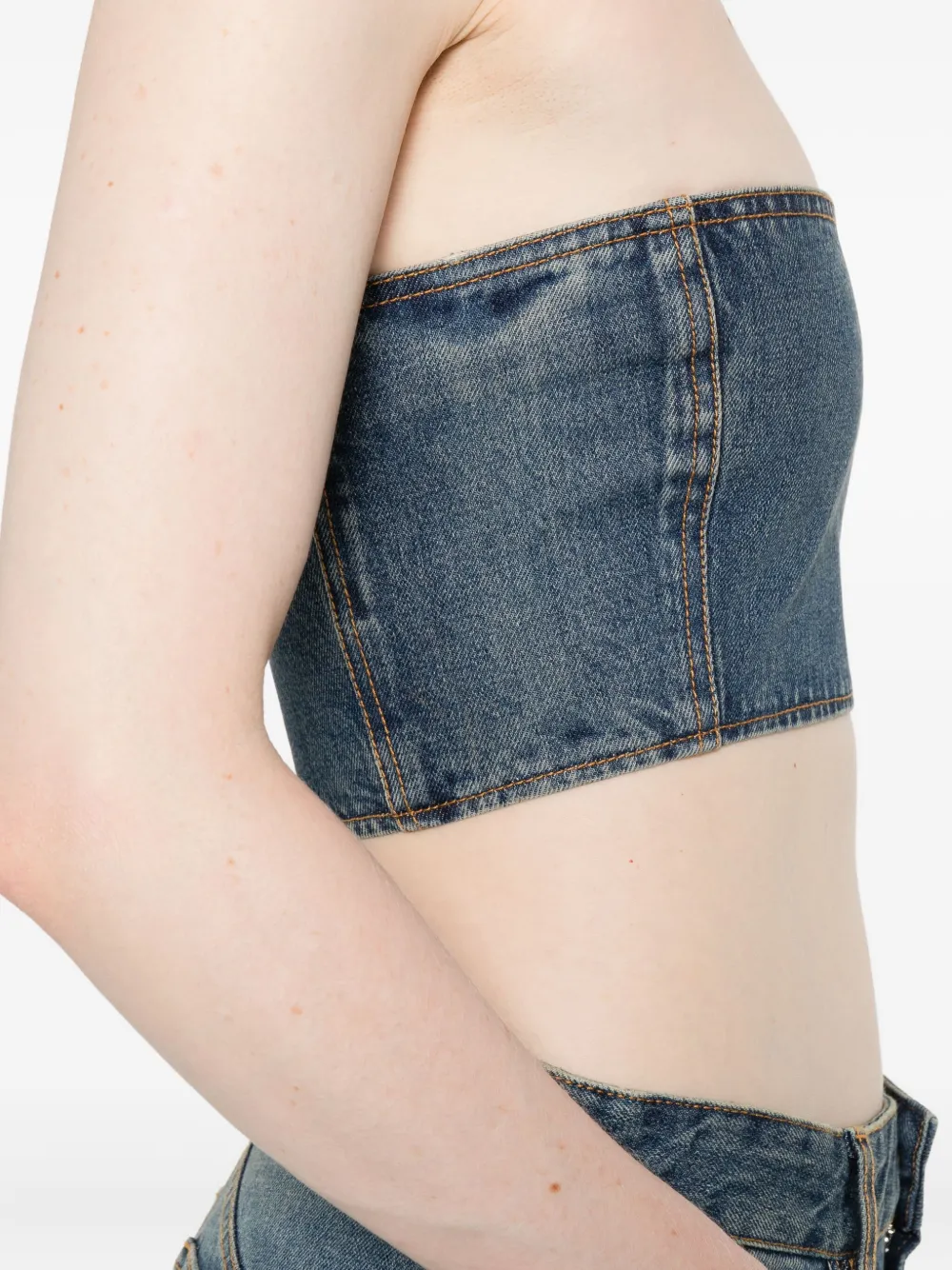 Укороченный джинсовый топ Alaïa, синий 78 465₽