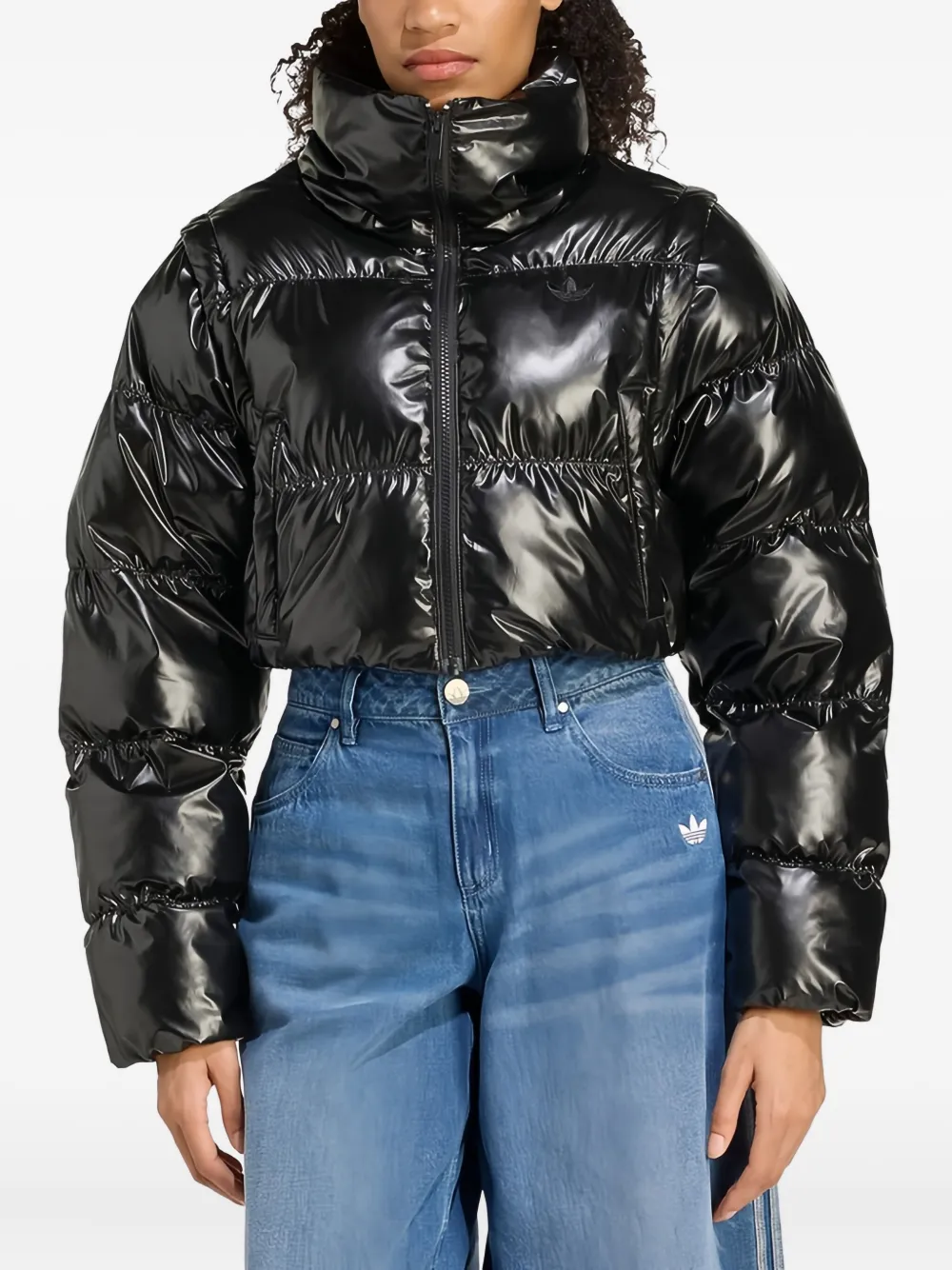 Укороченный пуховик adidas, черный