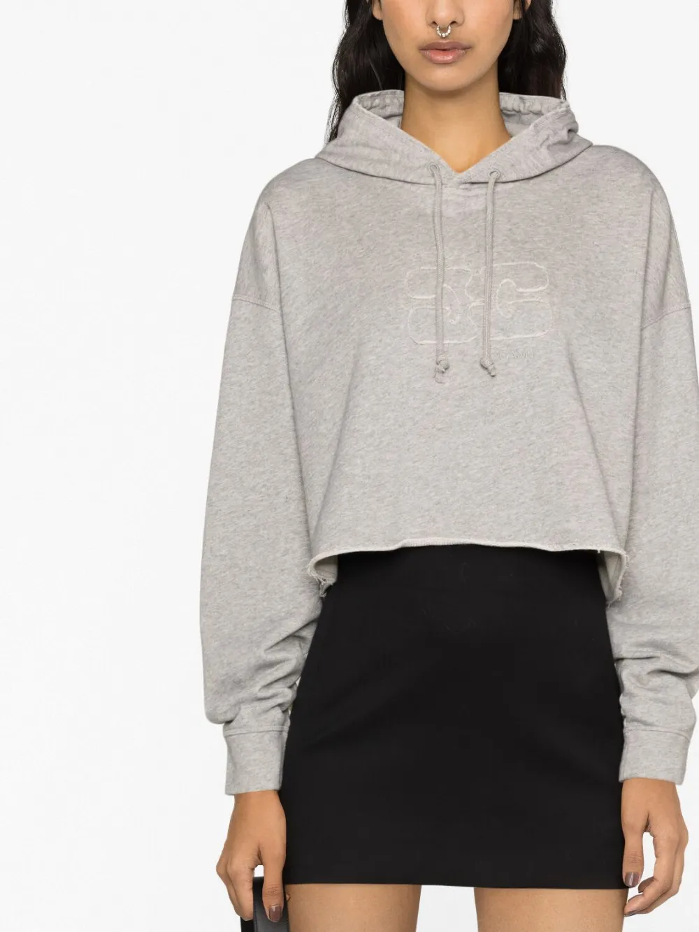 Укороченное худи с тисненым логотипом GANNI, серый 28 518₽