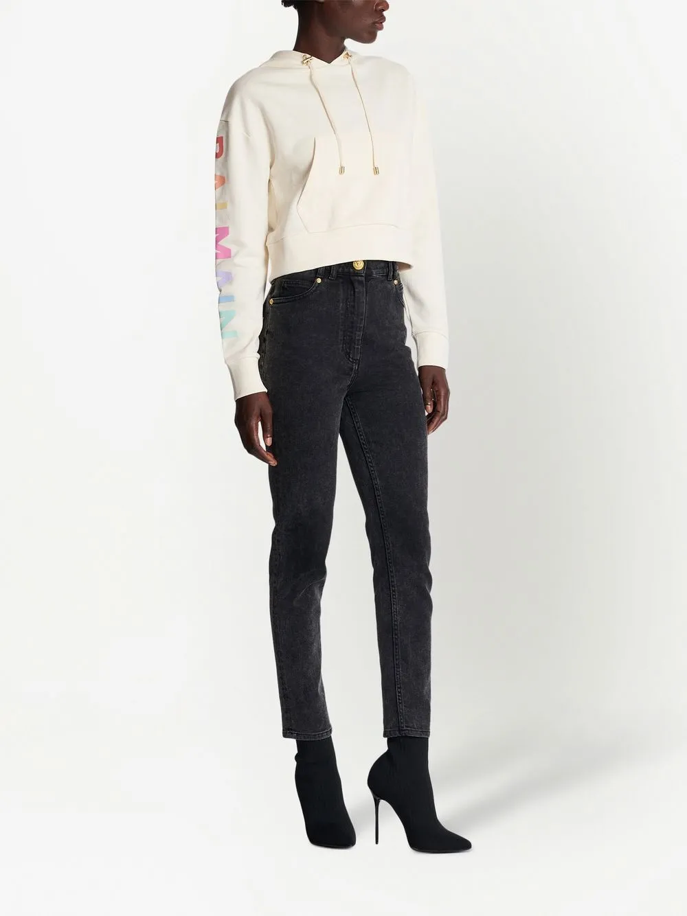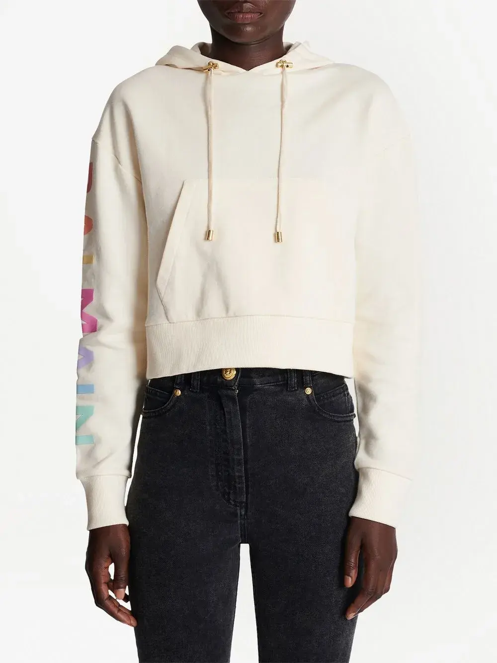 Укороченное худи с логотипом BALMAIN, белый 73 068₽