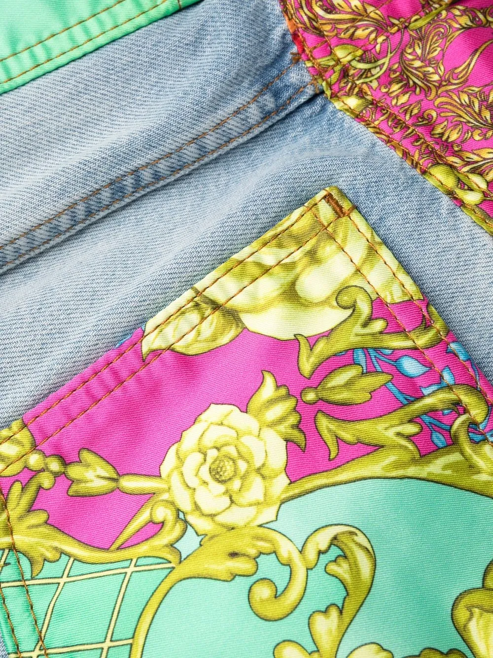 Искусственно состаренное покрытие, укороченная длина, застежка на пуговицах спереди и два накладных кармана сзади.