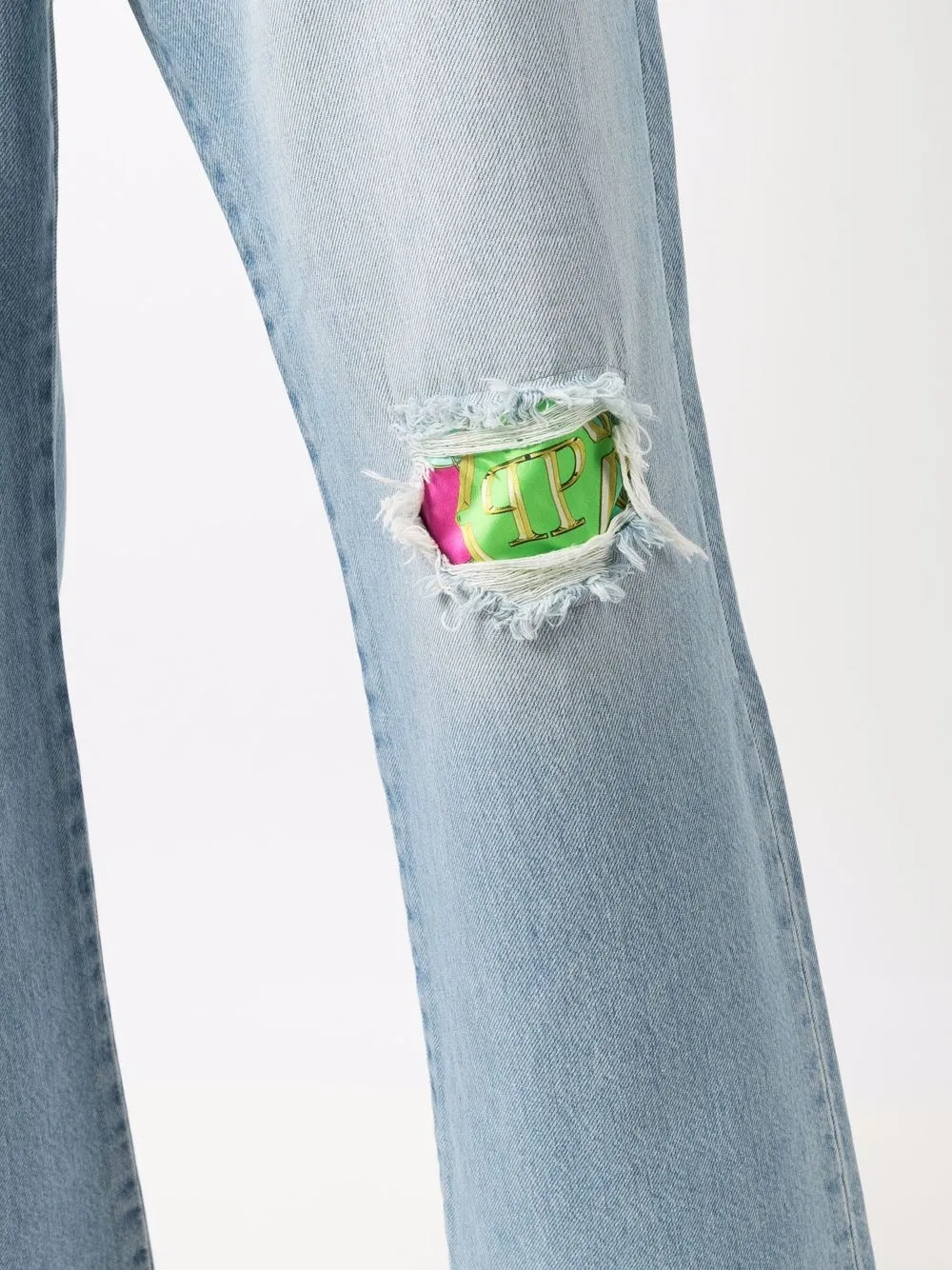 Укороченные джинсы с эффектом потертости Philipp Plein, синий