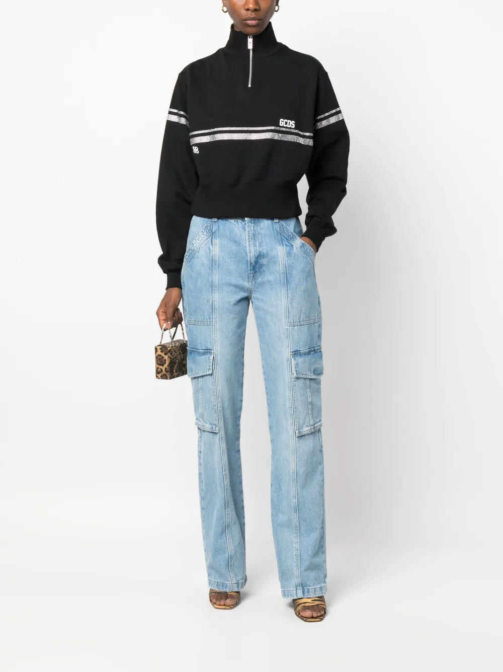 Укороченная толстовка со стразами GCDS, черный