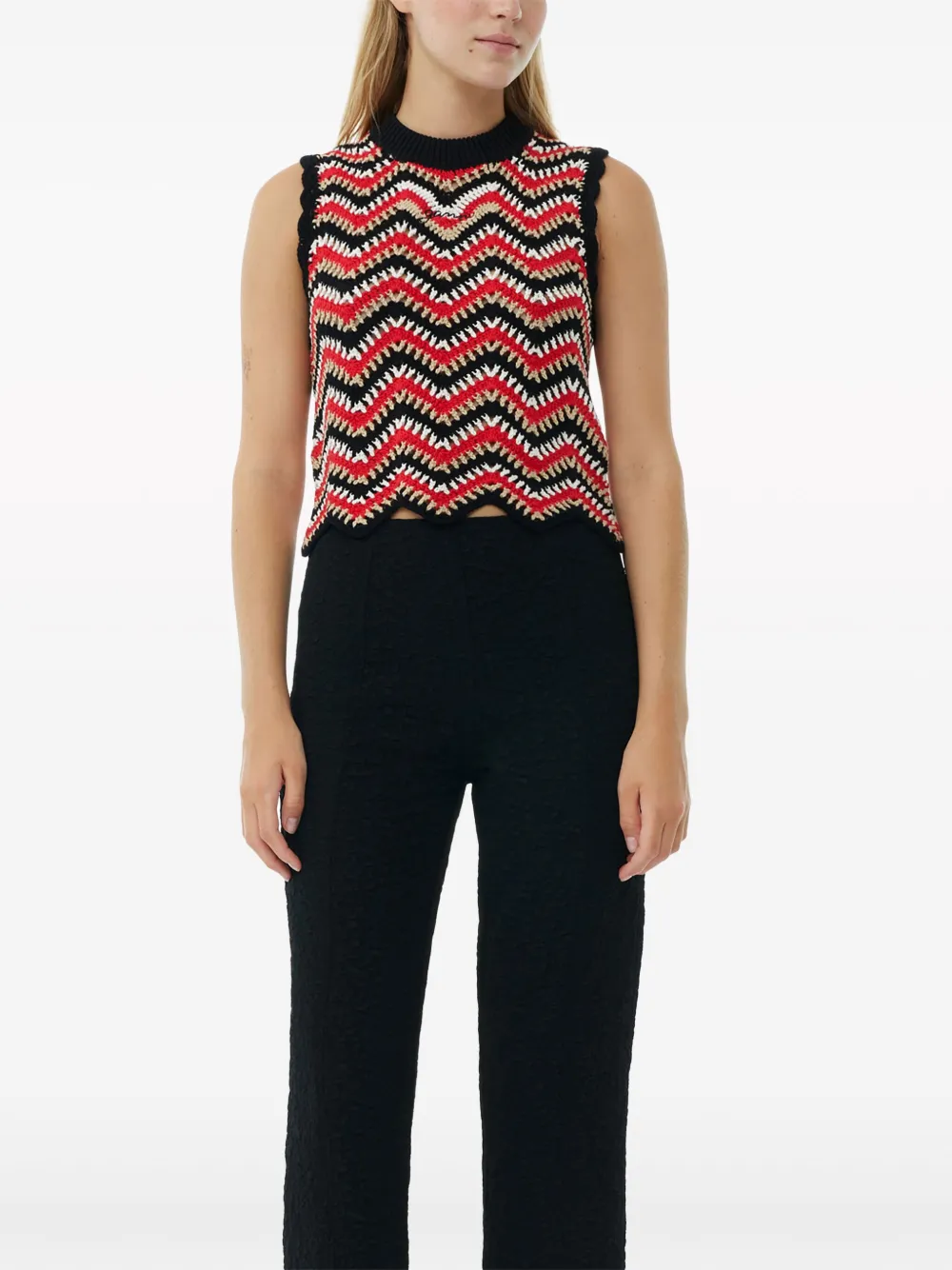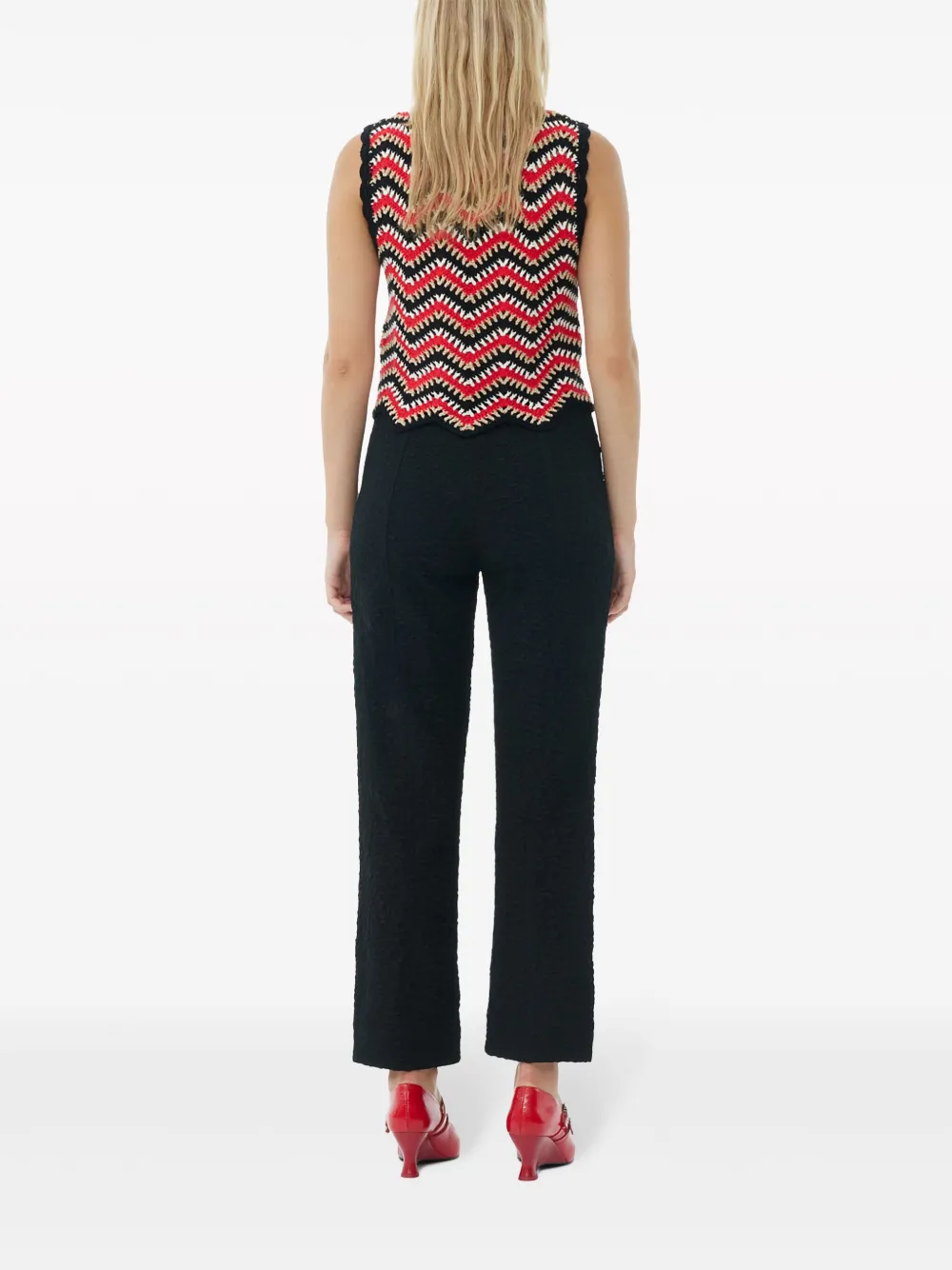 Укороченные фактурные брюки GANNI, черный