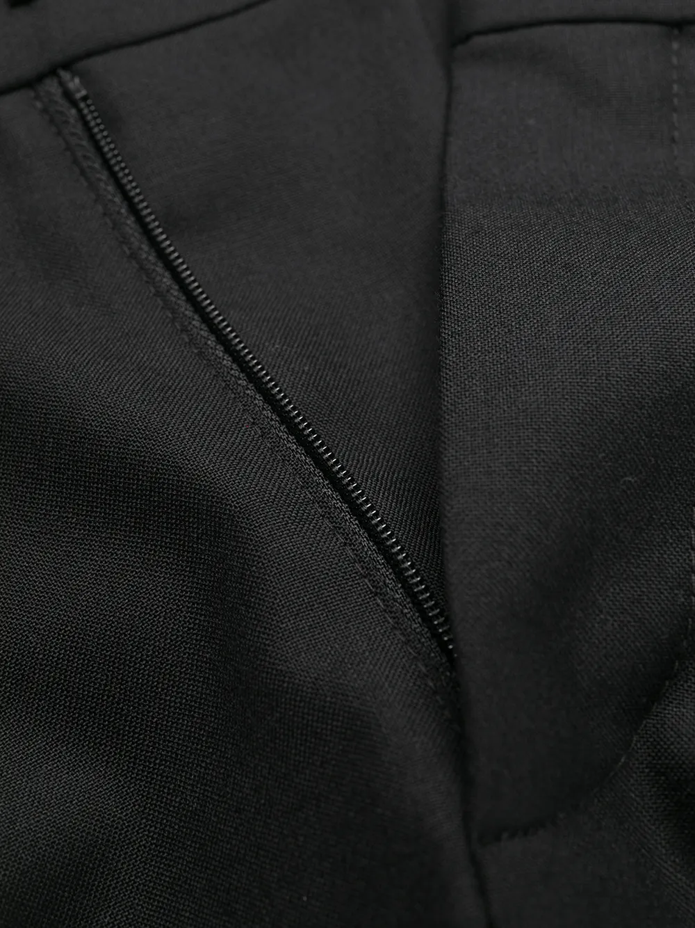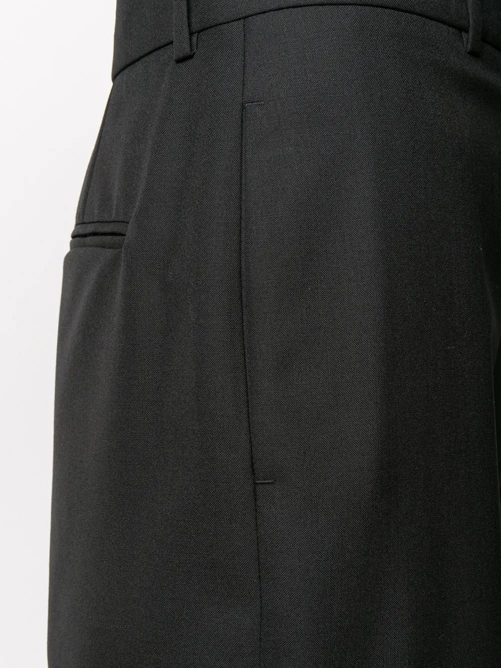 Петли для ремня, потайная застежка спереди, два кармана по бокам, два кармана с листочкой сзади и укороченная длина. Цвет: черный.