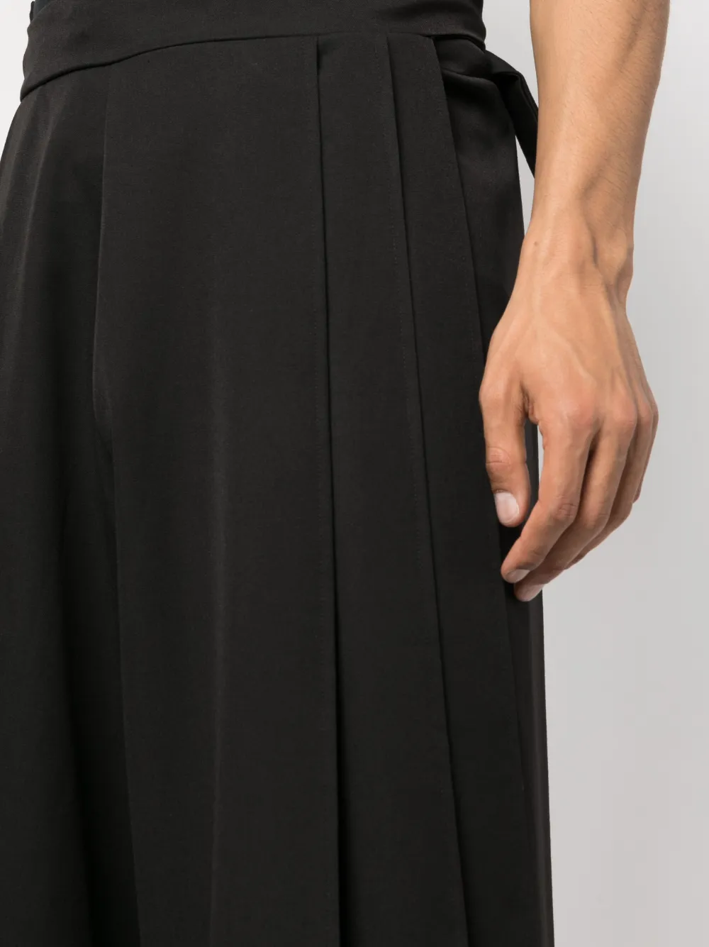 Черный, складки, широкий крой, завязки спереди и укороченная длина.