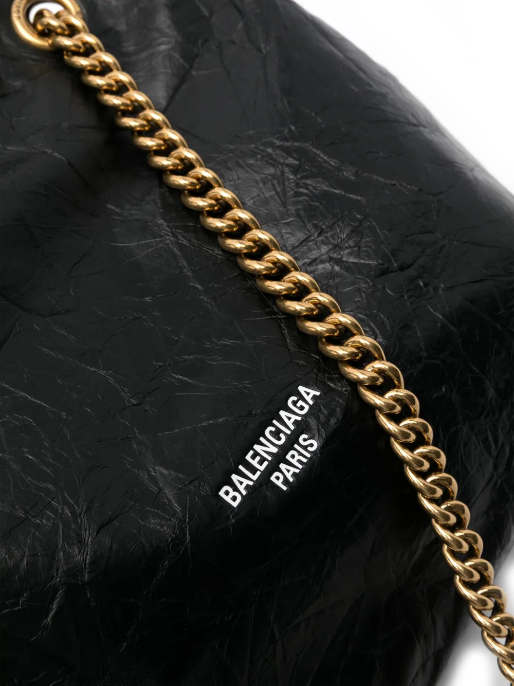 Черный, золотистая фурнитура, жатый эффект, логотип спереди, ремешок-цепочка на плечо, внутренний карман на молнии и цельная подкладка. Узнать больше о том, какие товары получают отметку «Ответственный выбор», можно здесь.