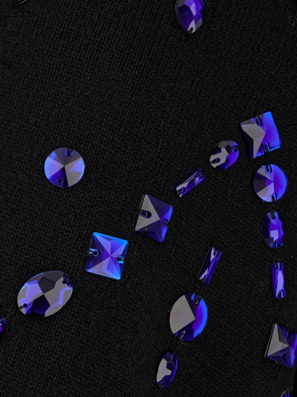 Черная шерстяная смесь, украшение из кристаллов, V-образный вырез, застежка на пуговицы, длинные рукава.