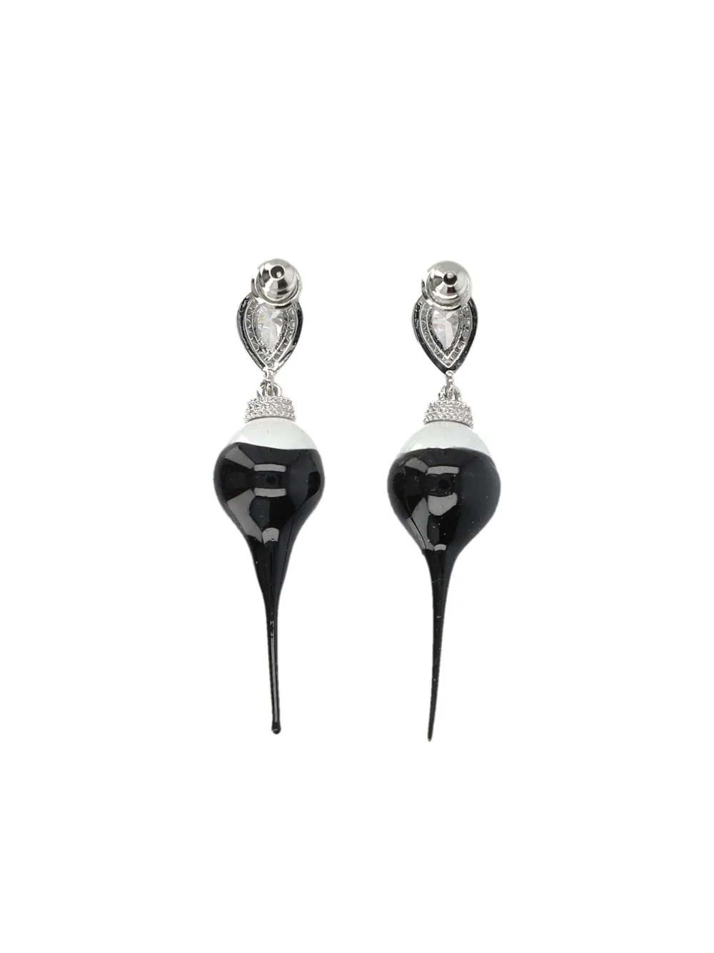 Черные серьги с каплевидной застежкой из искусственного жемчуга, украшенные кристаллами в зубчатой оправе. Застежка на спинке. Серьги продаются парой.