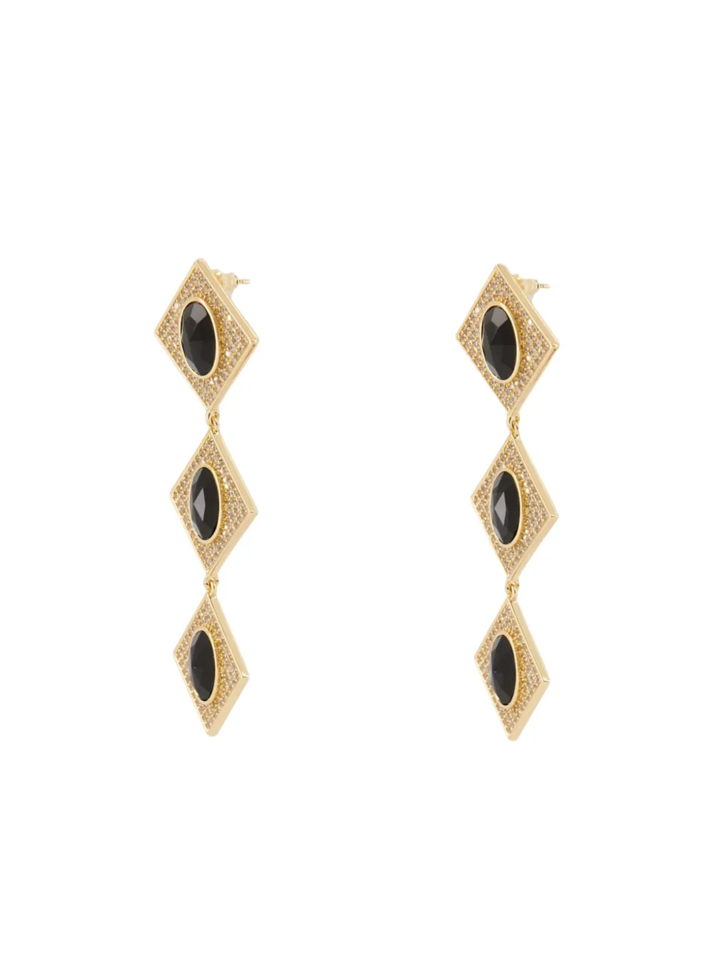 Квадратная оправа из металла оттенка черного золота с овальными кристаллами. Серьги продаются парой.