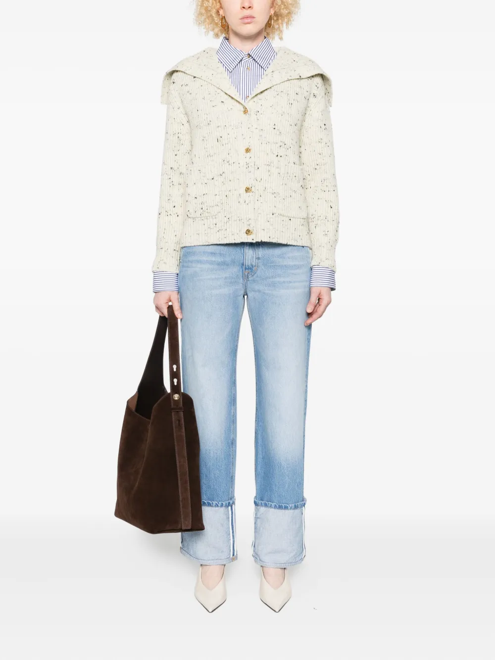 Джинсы из денима с манжетами и поясом Brandon Maxwell, синий