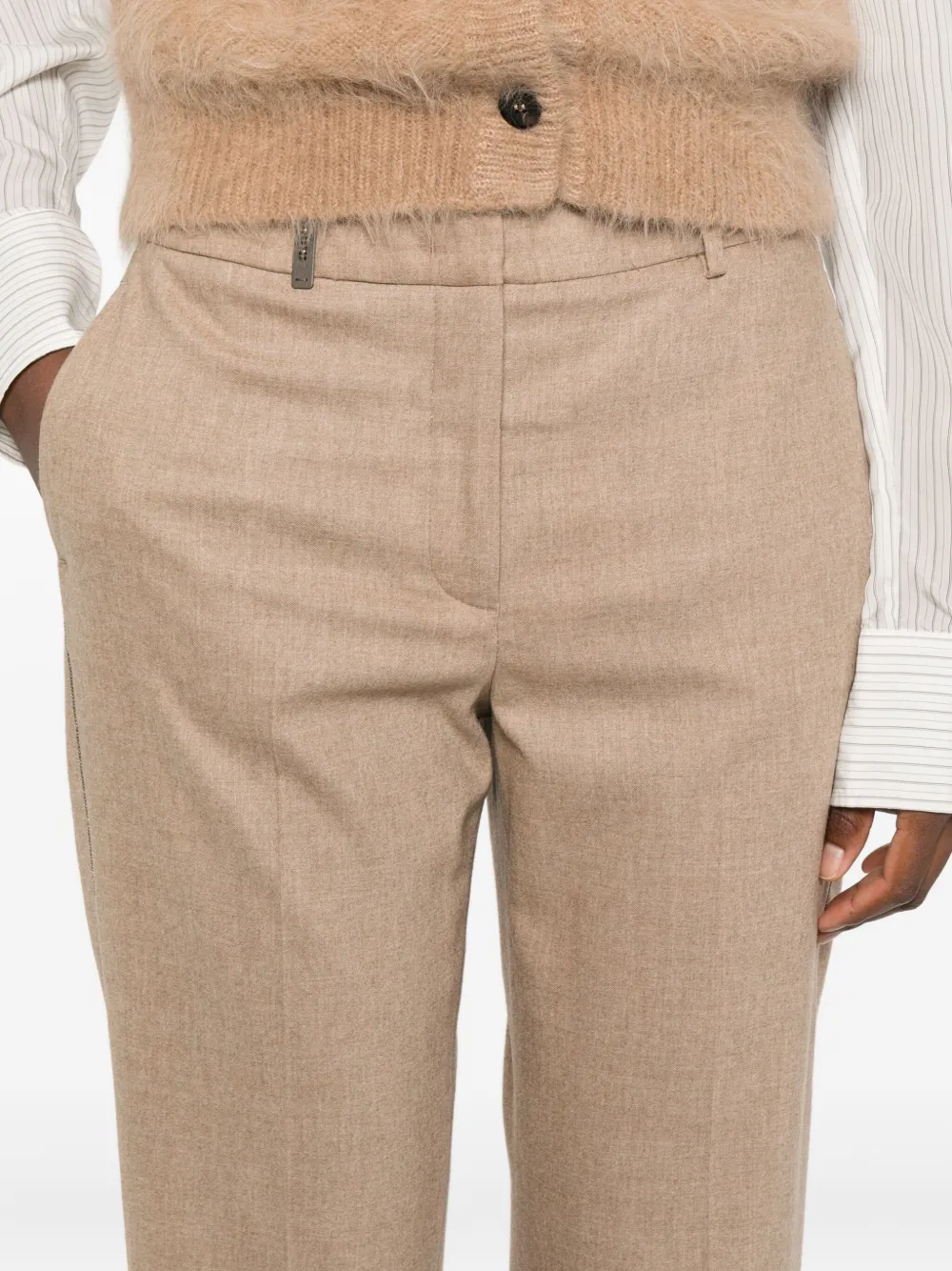 Бежевые прямые брюки, манжеты, подолы, складки спереди