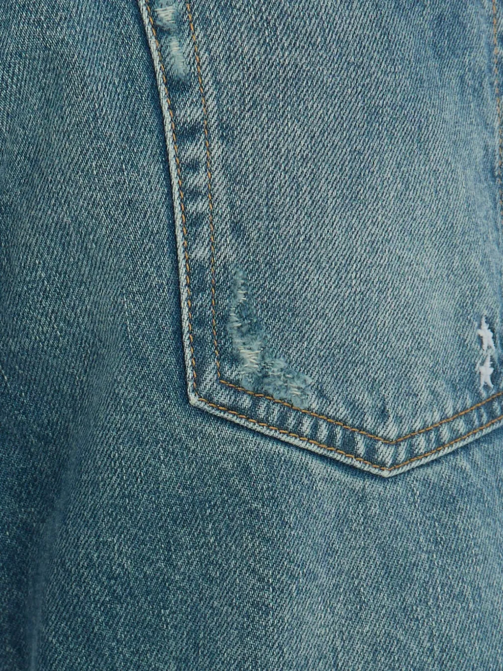 Синие вырезные детали, потертый цвет, фасон с пятью карманами