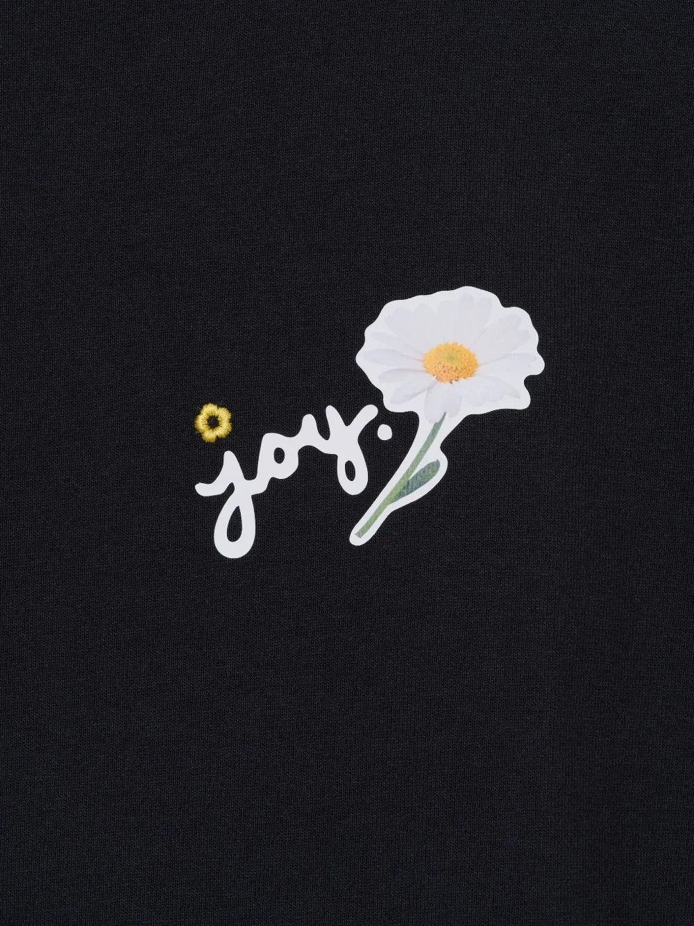 Короткие рукава, круглый вырез, хлопковый графический принт с вышивкой в виде черной ромашки