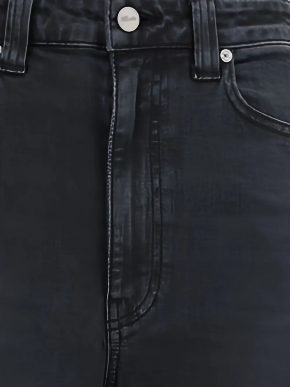 Черная классическая модель с высокой талией, пятью карманами и застежкой на пуговицы.