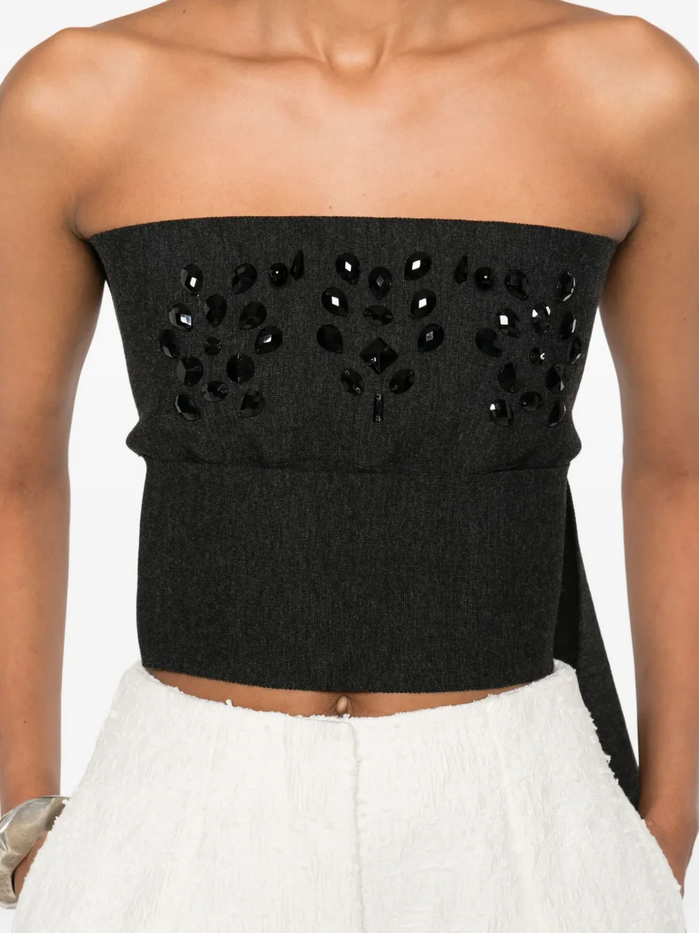 Декорированный шерстяной топ Alberta Ferretti, серый