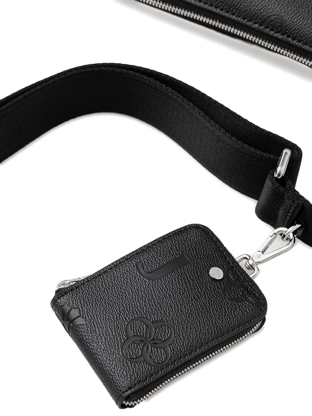 Черный тисненый логотип, застежка-молния, регулируемый ремешок, съемный чехол на молнии, серебристая фурнитура