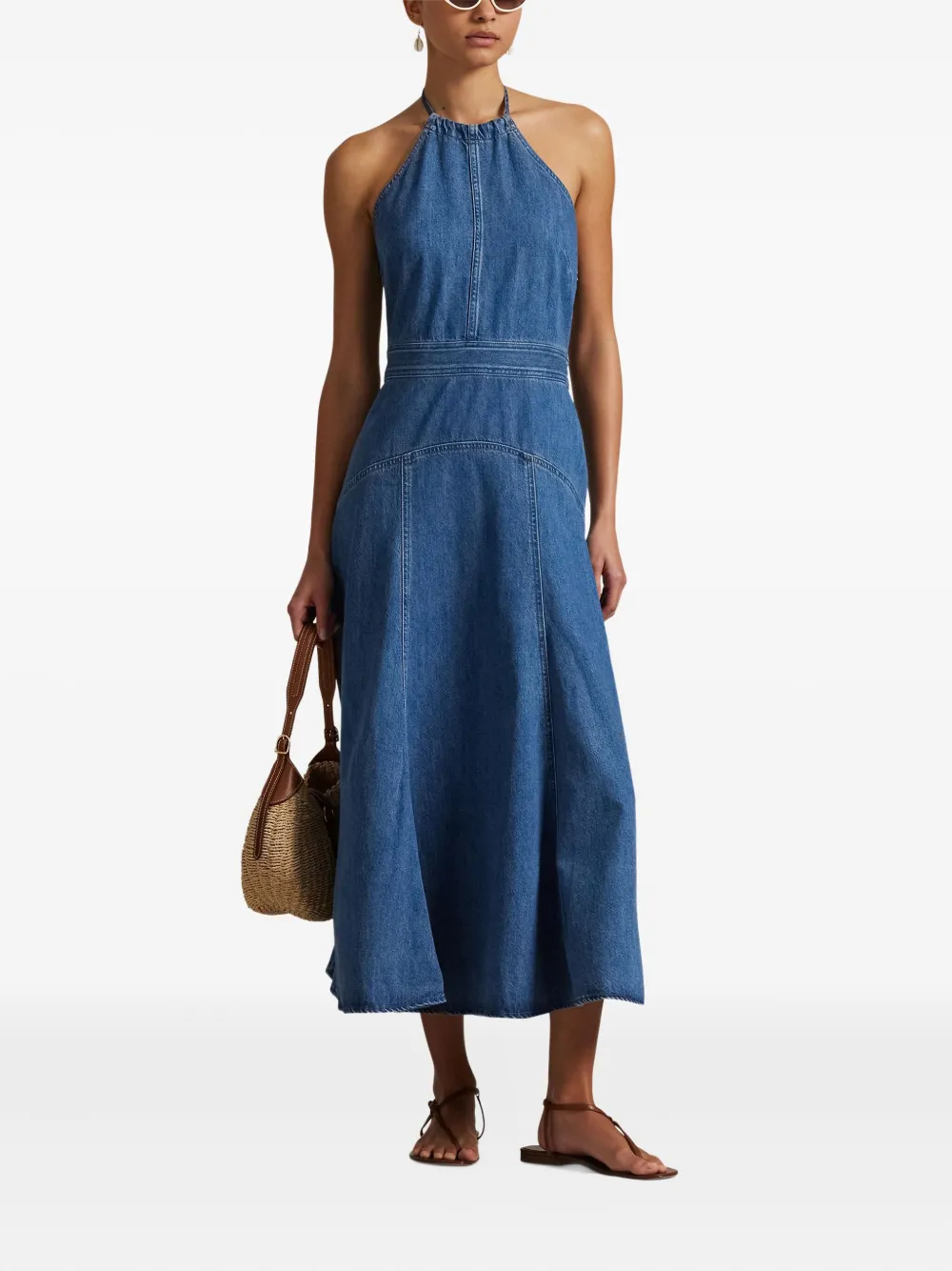 Джинсовое платье миди с вырезом халтер POLO RALPH LAUREN, синий