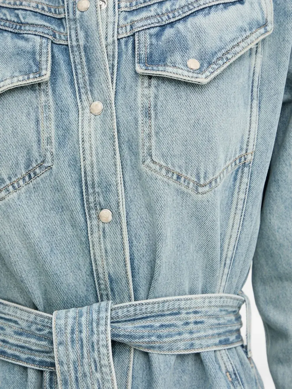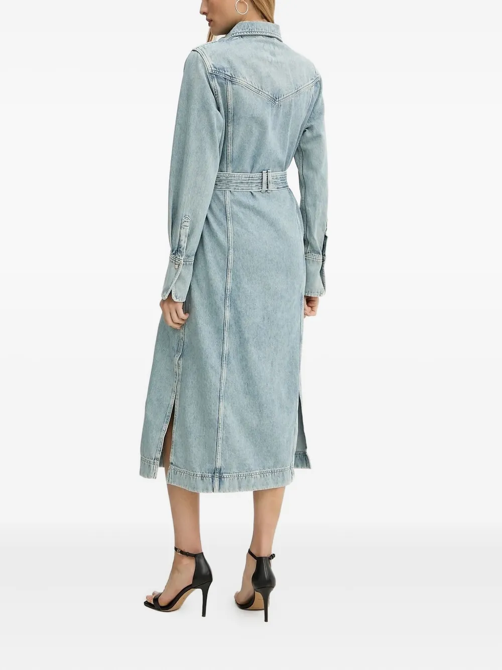 Джинсовое платье-рубашка миди с поясом BOSS, синий