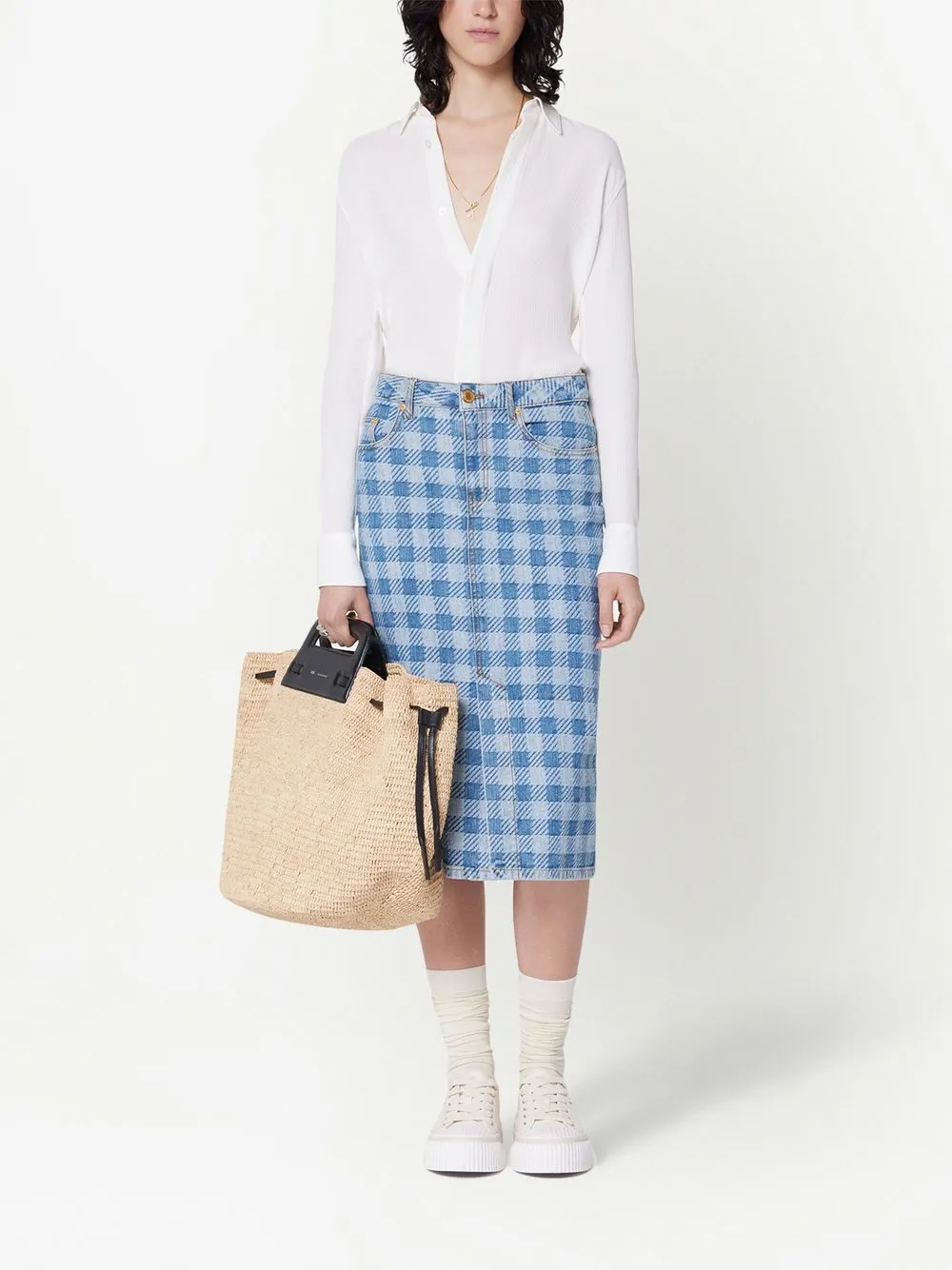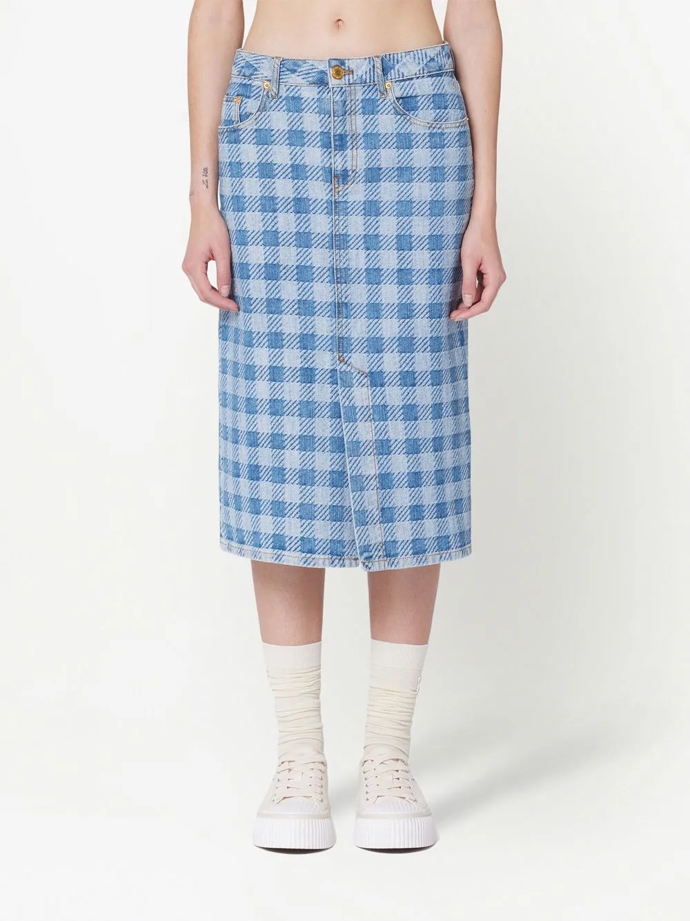 Джинсовая юбка-карандаш в клетку гингем AMI Paris, синий