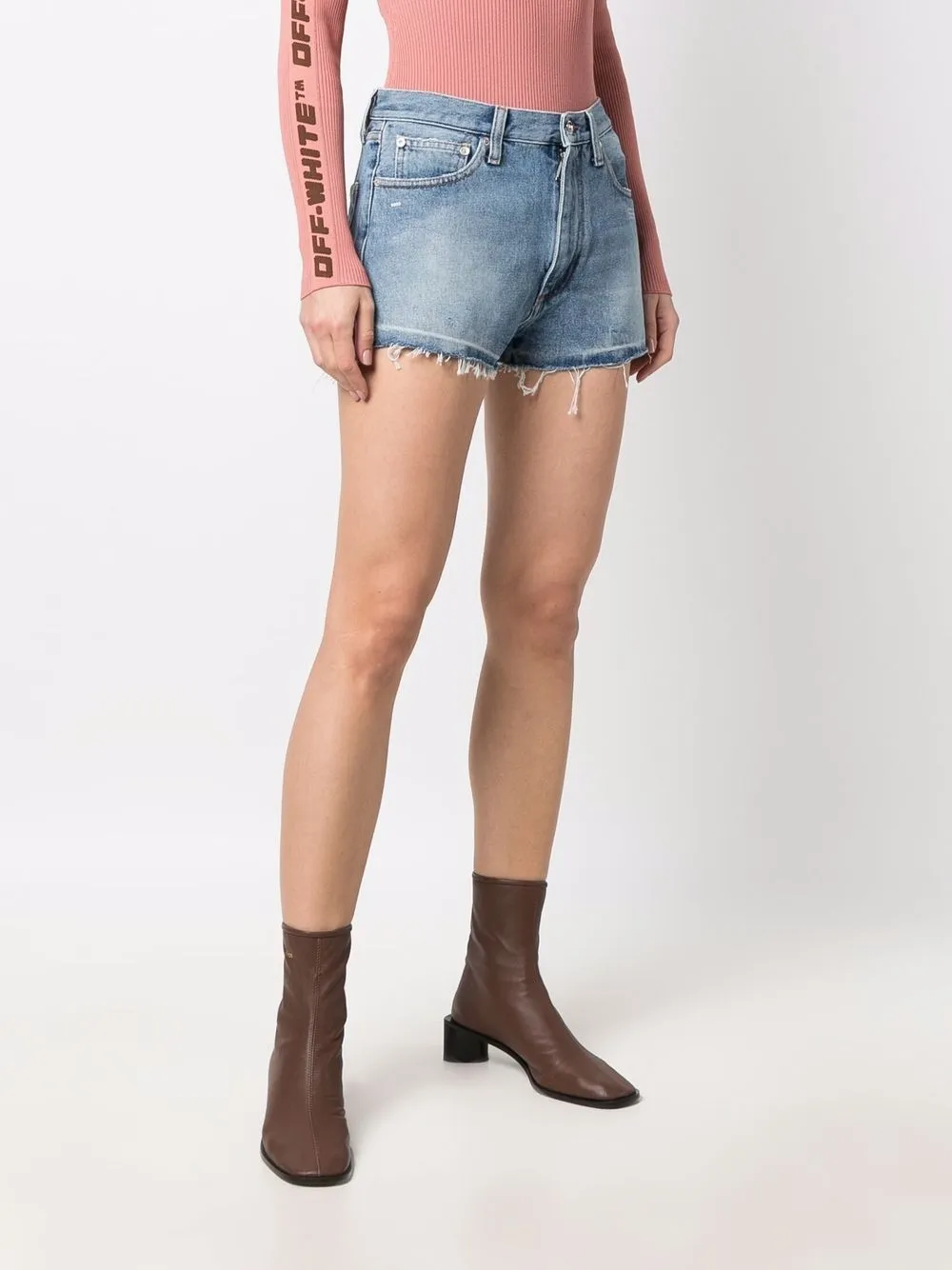 Джинсовые шорты с бахромой и логотипом OFF-WHITE, синий