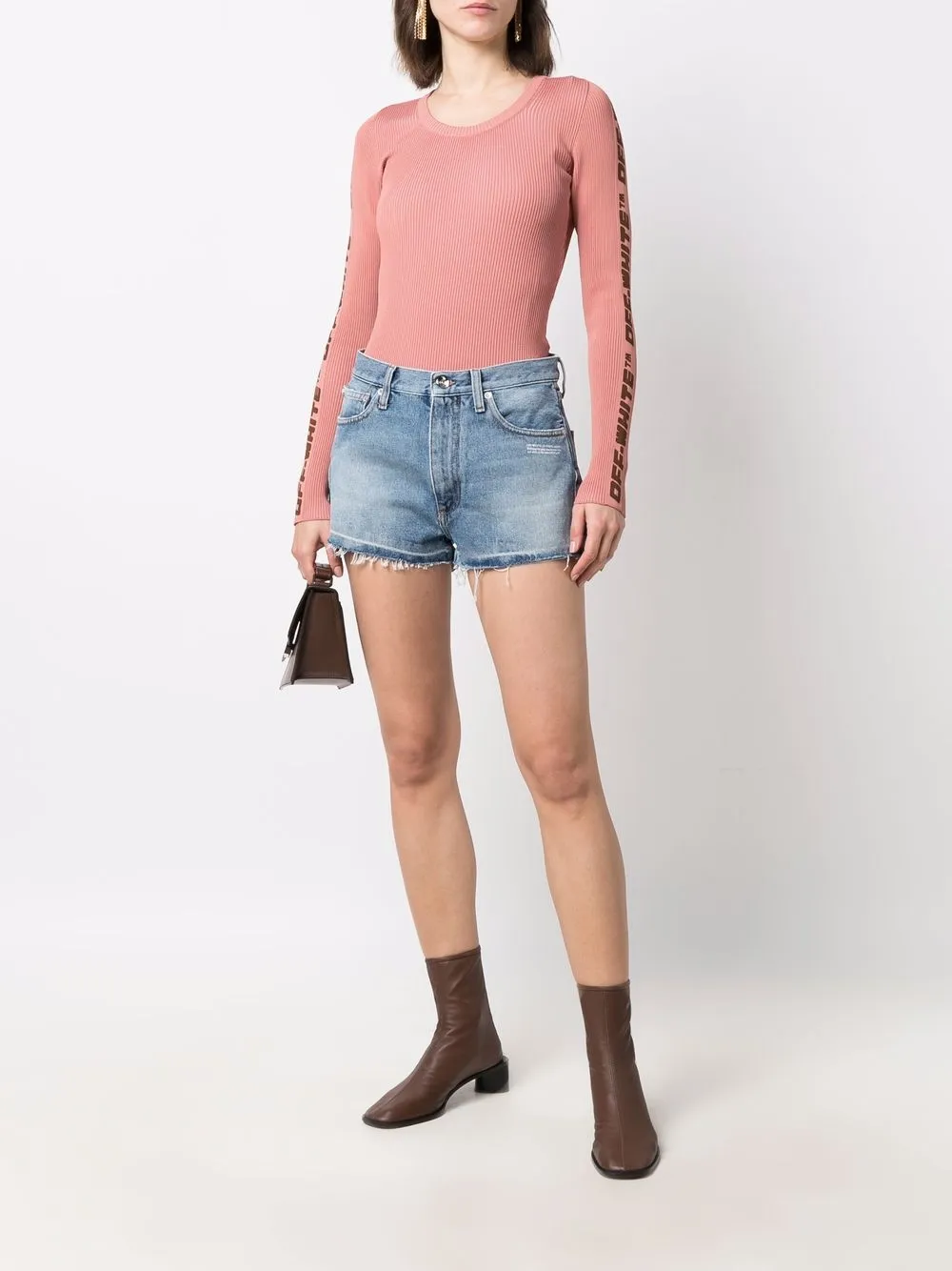 Джинсовые шорты с бахромой и логотипом OFF-WHITE, синий 31 574₽