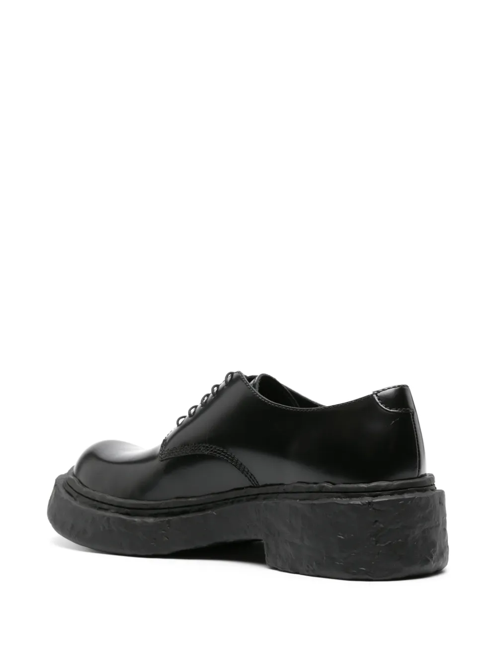 Черный, телячья кожа, стелька с логотипом, шнуровка спереди, закругленный носок и блочный каблук. Это унисекс-модель. Обратите внимание, что для нее используется мужская размерная сетка.