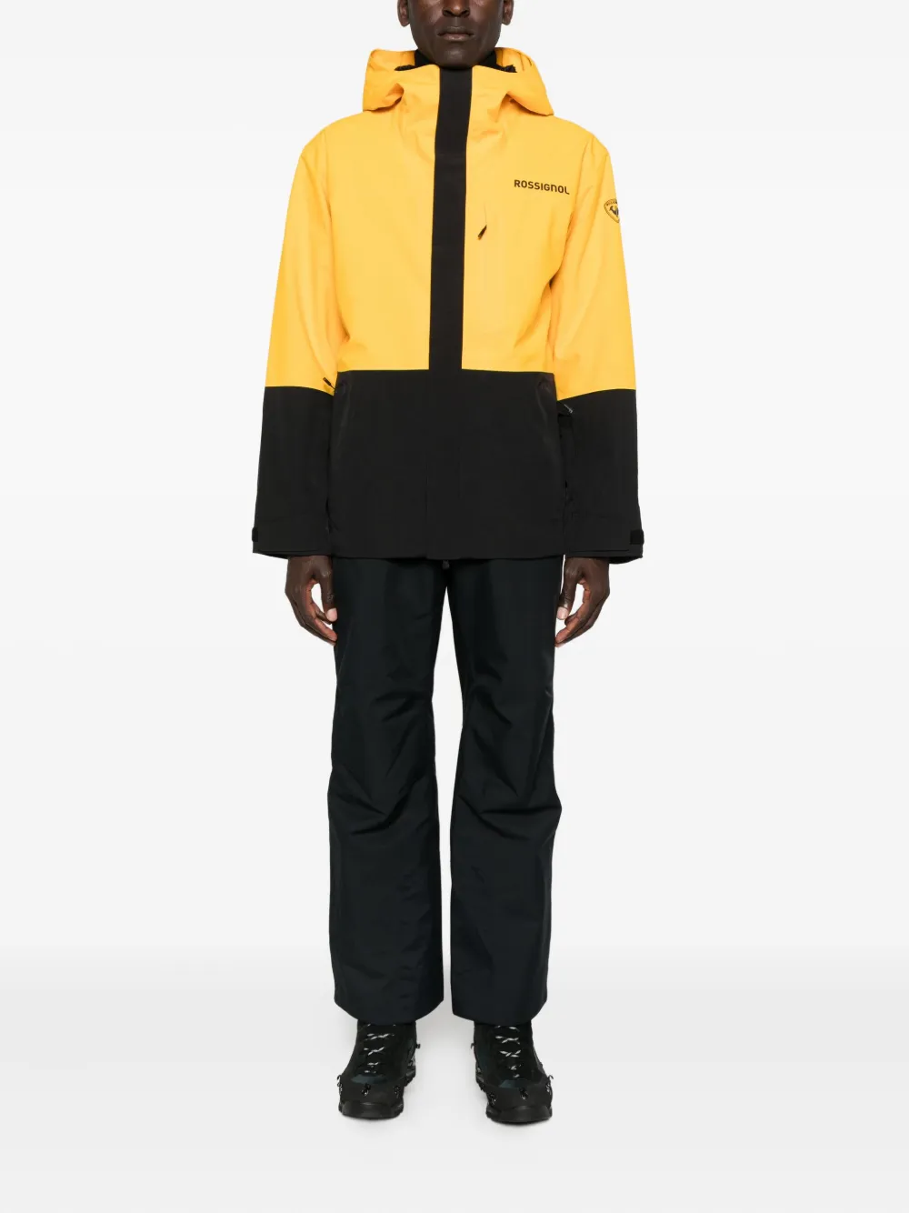 Желто-черная панель, застежка-молния, длинные рукава, прорезные карманы, снежная юбка, прорезные карманы