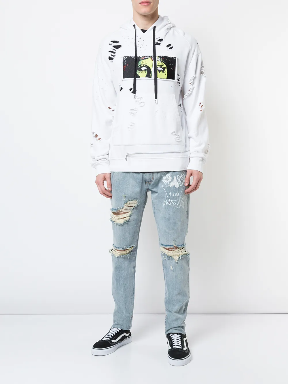 Белая хлопковая толстовка с капюшоном 'Destroy Popularity' от Haculla.