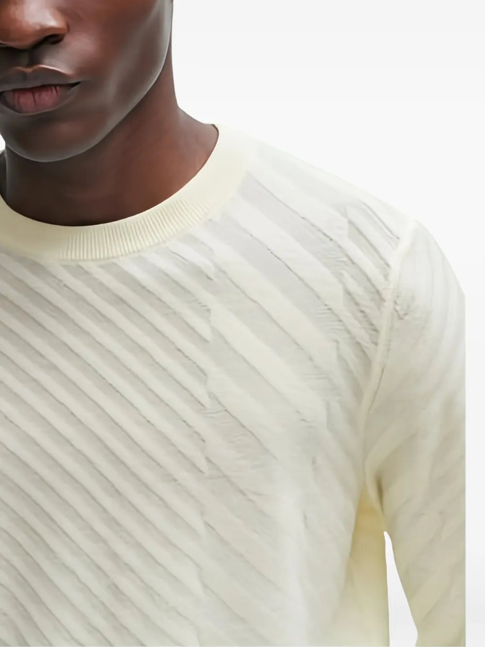 Свитер с круглым вырезом и диагональным узором BOSS, белый
