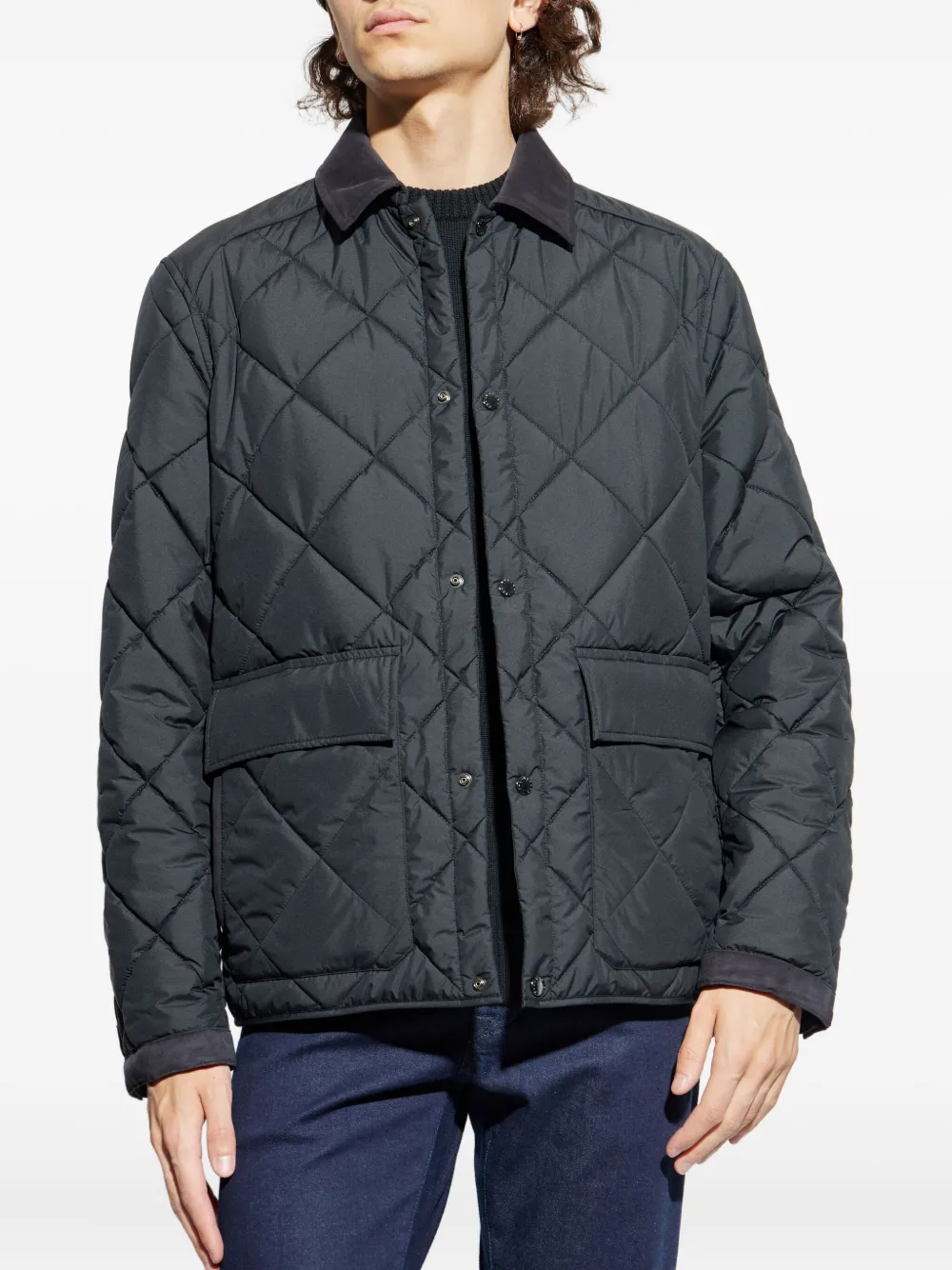 Синие ромбовидные стеганые пуговицы, вельветовый воротник, длинные рукава