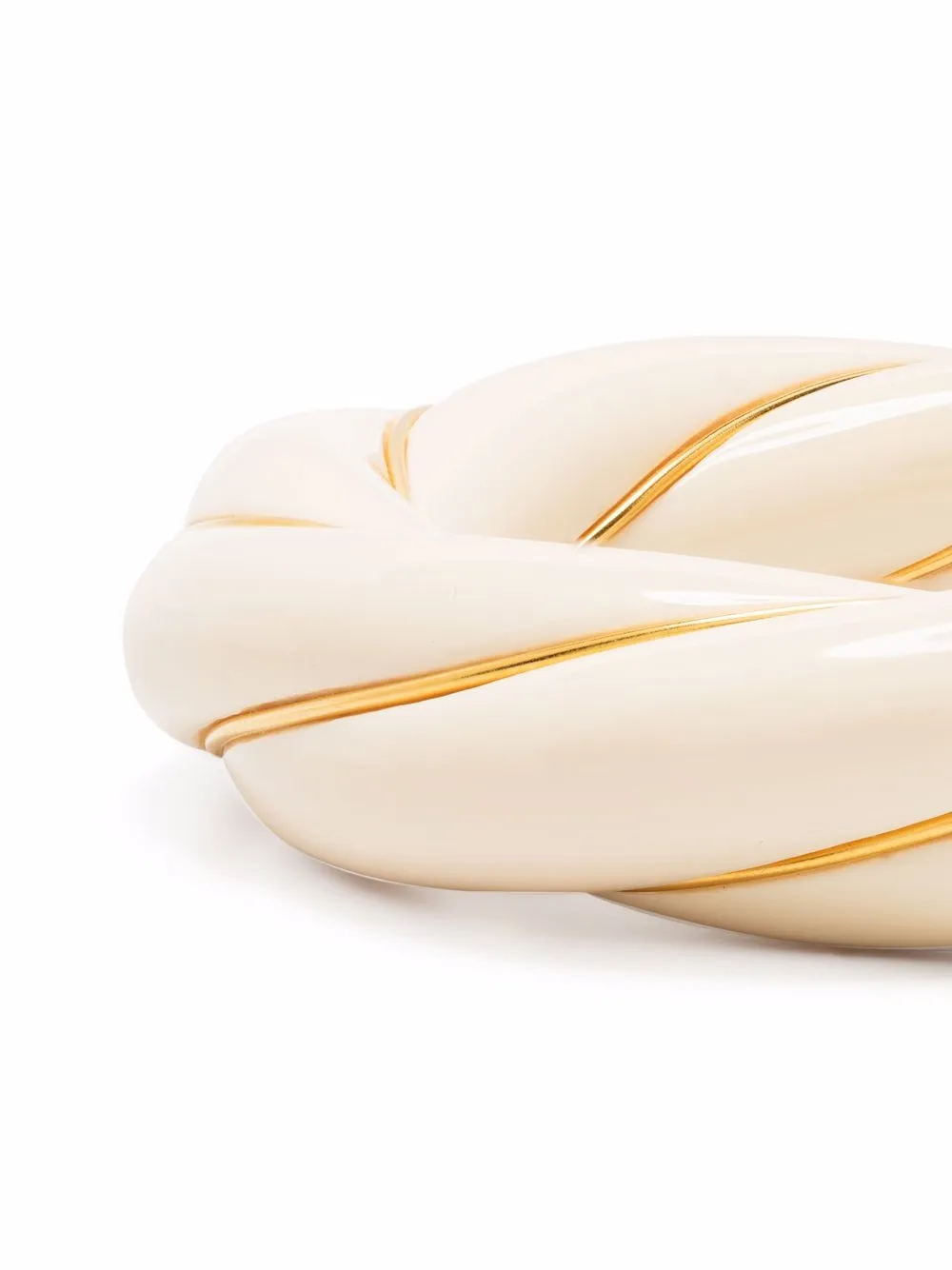 Перекрученная деталь, глянцевая фактура и модель без застежки.