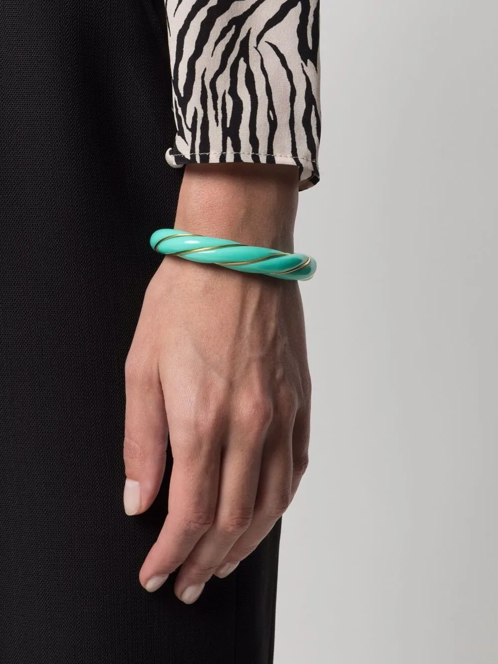 Золотистая фурнитура, сочетание двух оттенков и дизайн без застежки.