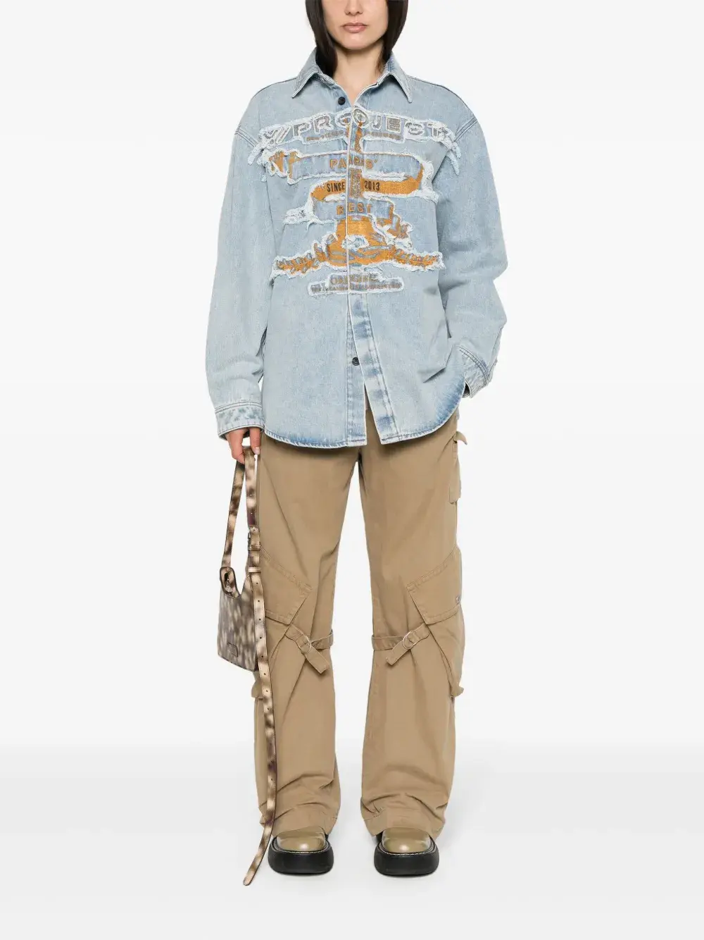 Подробнее о товаре: • голубой • органический хлопок • деним • эффект потертости • модель с прорезями • классический воротник • длинные рукава • манжеты на пуговицах • вышивка спереди • нашивка с логотипом сзади • плиссировка • прямой подол • потайная пуговичная застежка спереди • Это унисекс-модель. Обратите внимание, что для нее используется мужская размерная сетка. • Ответственный выбор: В составе этого товара есть органический хлопок. Его производитель не использует химические вещества, пестициды и искусственные удобрения и внедряет методы, которые помогают сохранить биоразнообразие, улучшают качество почвы и сокращают потребление воды.