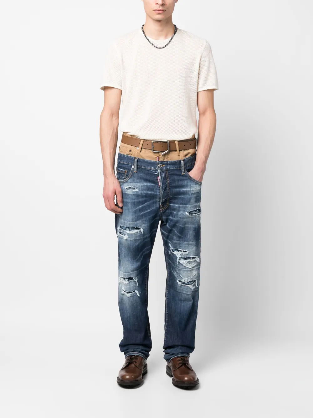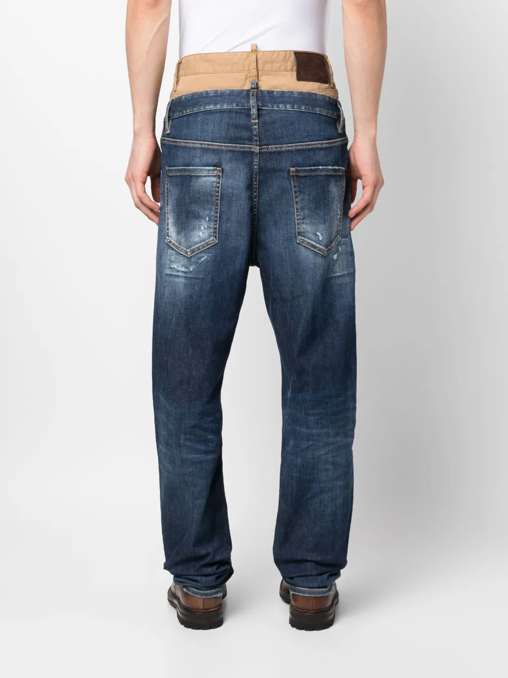 Джинсы с эффектом потертости и двойным поясом DSQUARED2, синий
