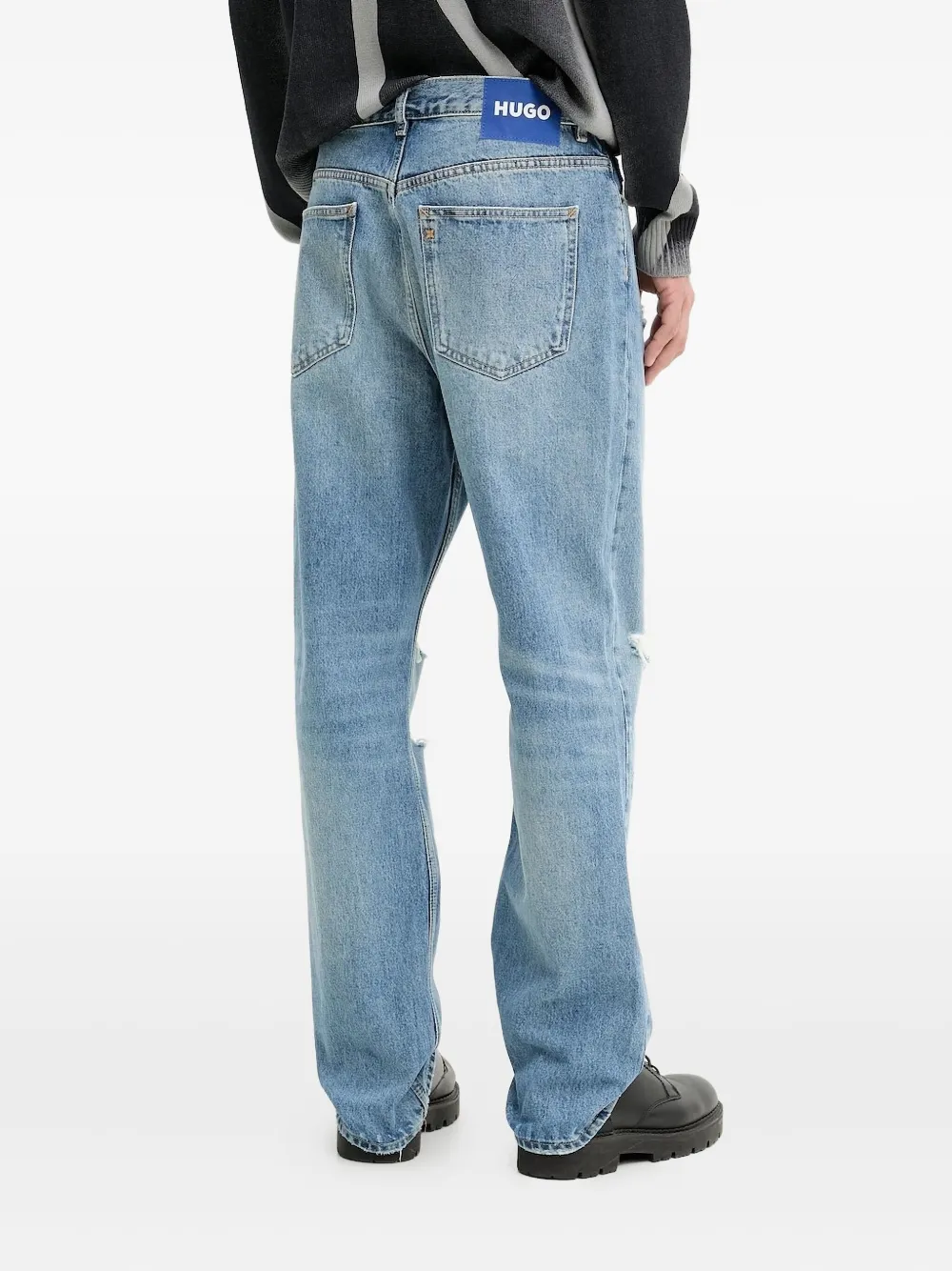 Джинсы прямого кроя с потертостями HUGO, синий