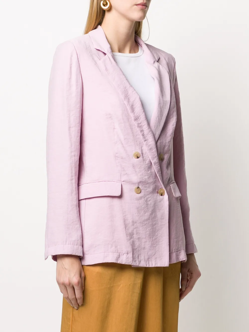 Двубортный блейзер от Forte Forte. Зазубренные лацканы, передние карманы с клапанами и длинные рукава.