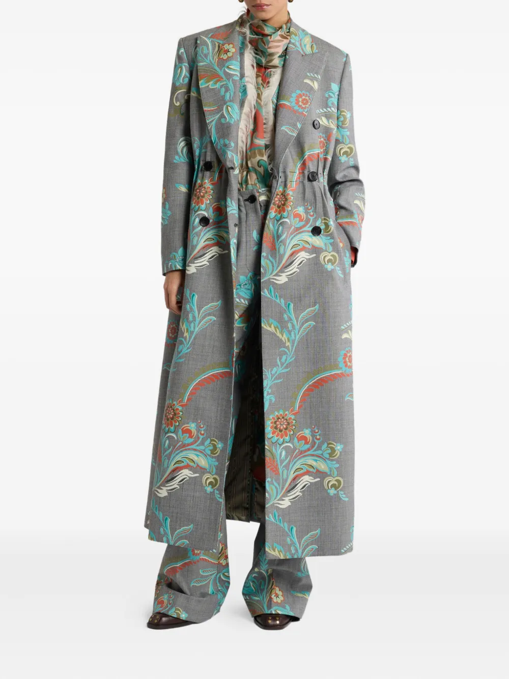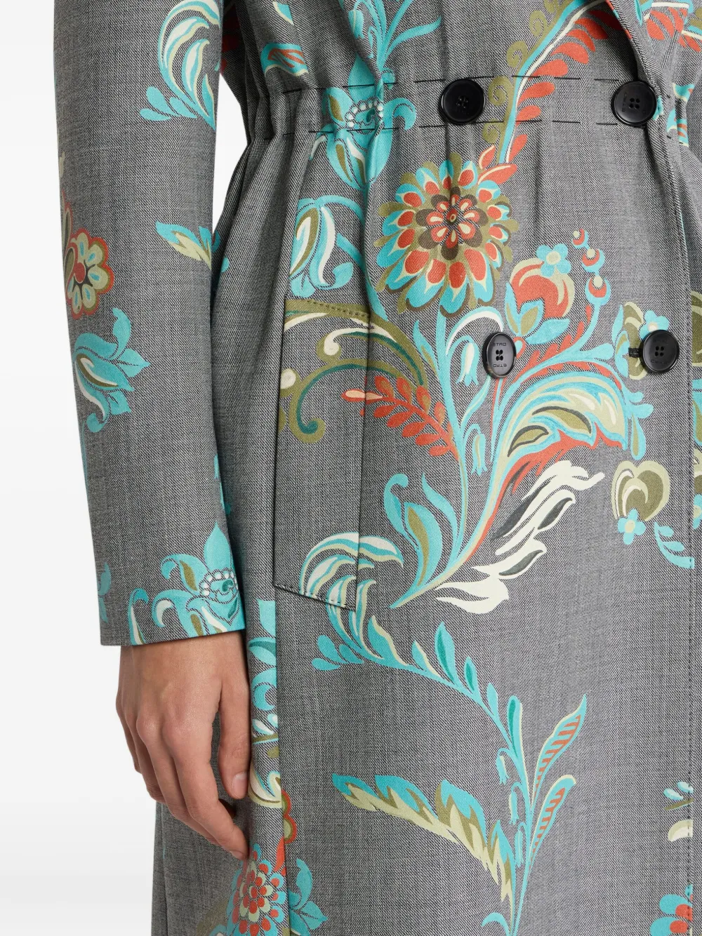 Двубортное пальто с принтом с принтом ETRO, серый